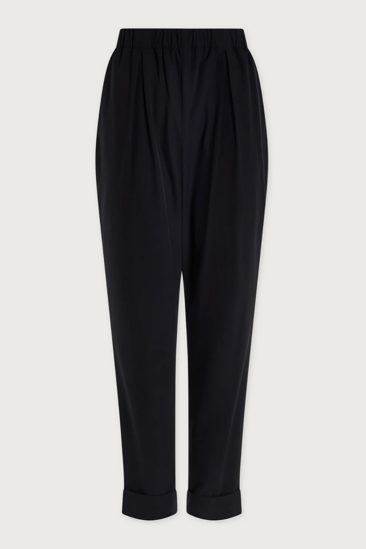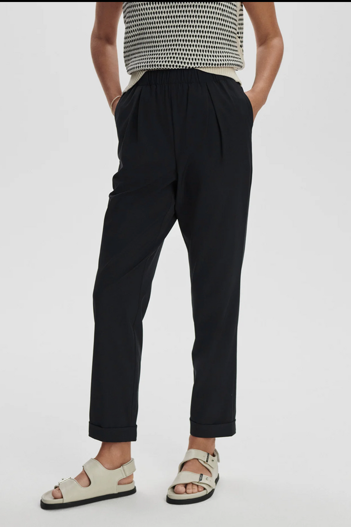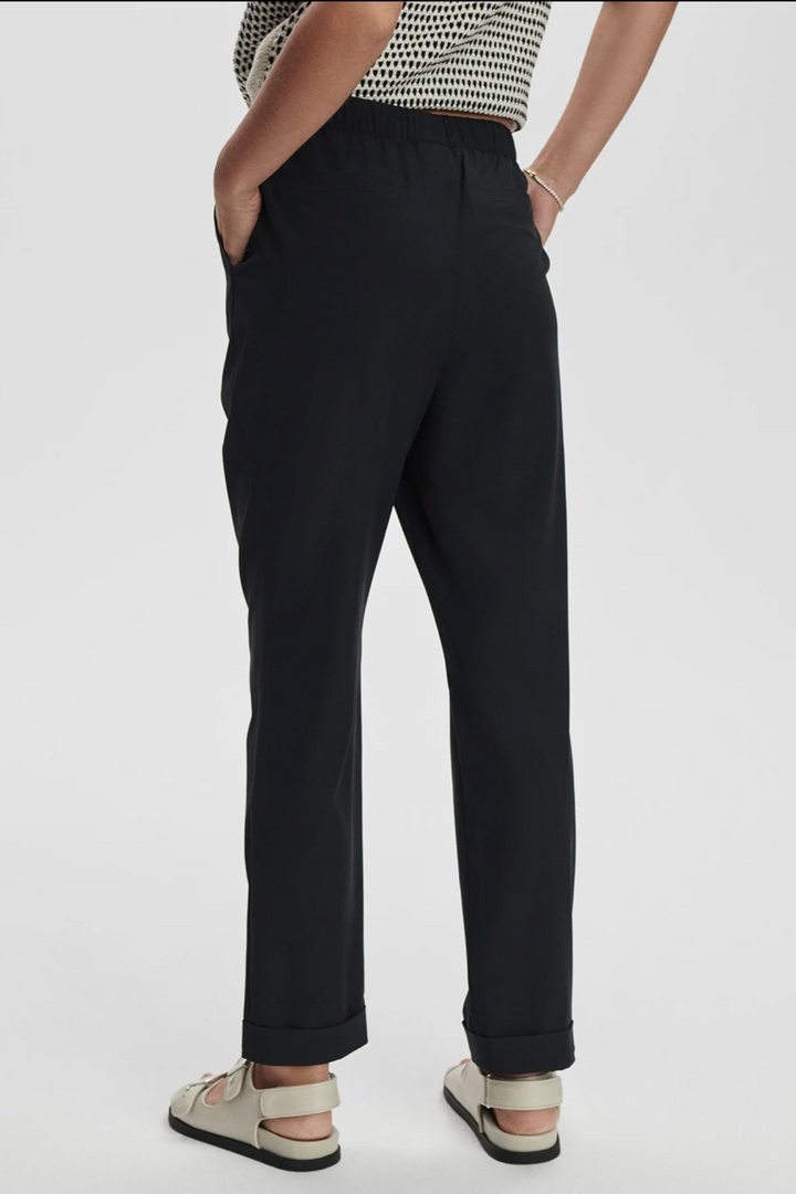 The Alana Slim Taper Cuff Pant 27- Black is expertly designed for comfort and style. The elasticated waistband and turn-up cuffs create a slim and tapered fit, while the Soft Stretch Woven fabric provides all-day comfort and a lightweight feel. Perfect for any occasion, these pants are a must-have addition to your wardrobe.