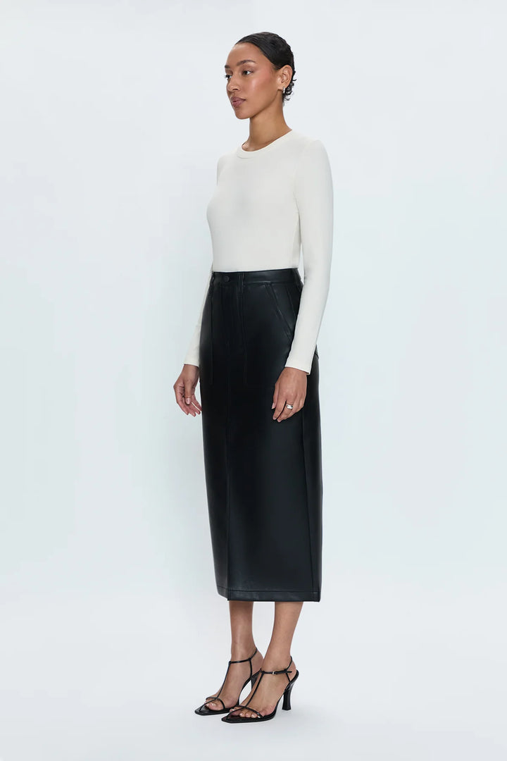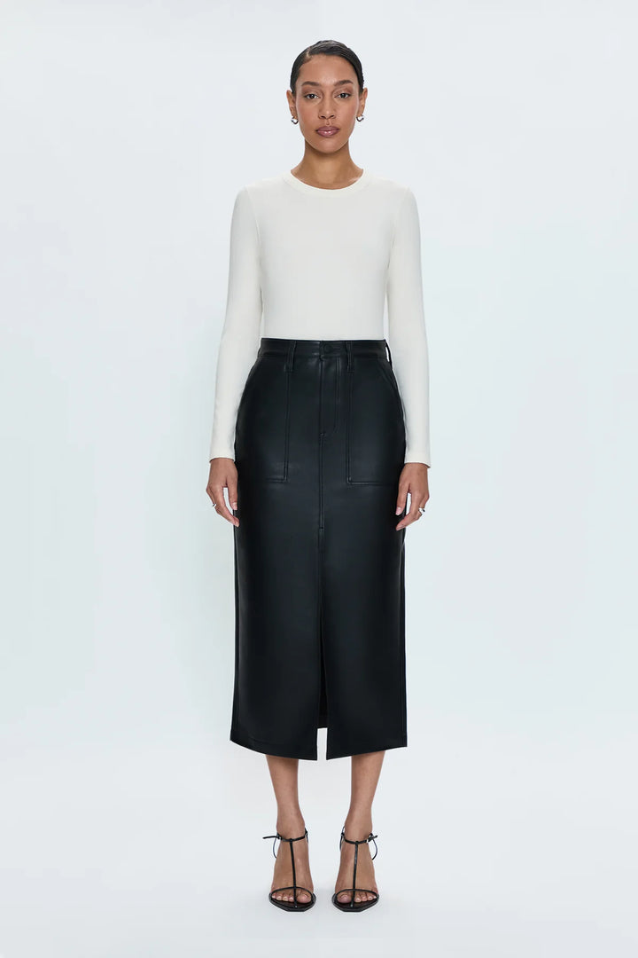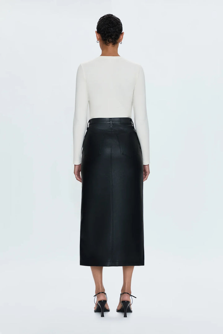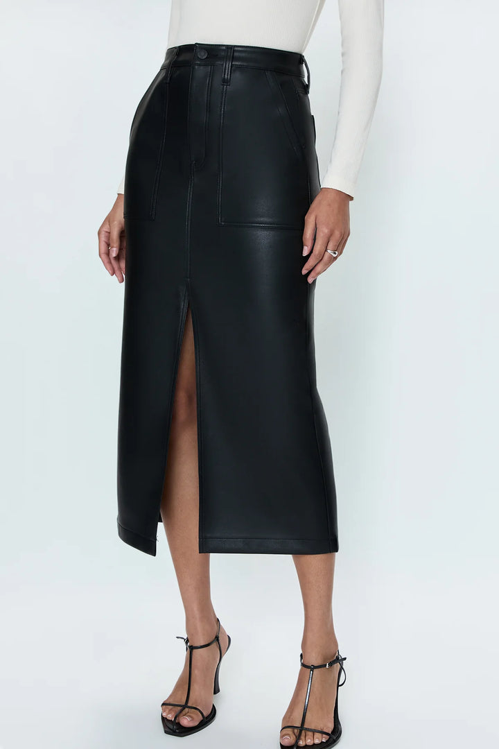 Vegan leather maxi skirt from Pistola. Perfect this holiday season for all your seasonal parties! Fits true to size.