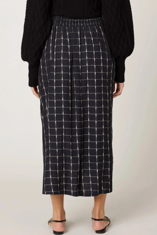 Add a playful twist to your wardrobe with the Amber Ankle Skirt in Saul Print. Crafted from a cozy cotton-viscose blend, it combines comfort with chic details like a smocked back waistband and a versatile waist tie you can wear front or back. This ankle-length skirt moves effortlessly from sunny days to cooler evenings, making every outfit feel fresh and fun.