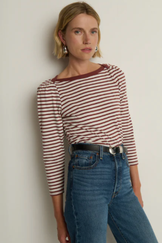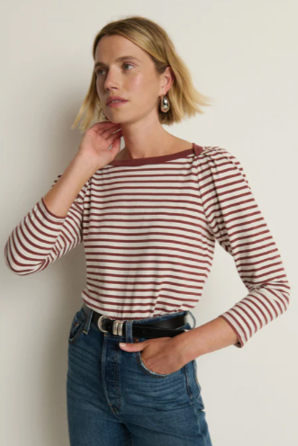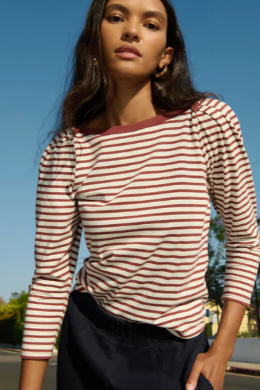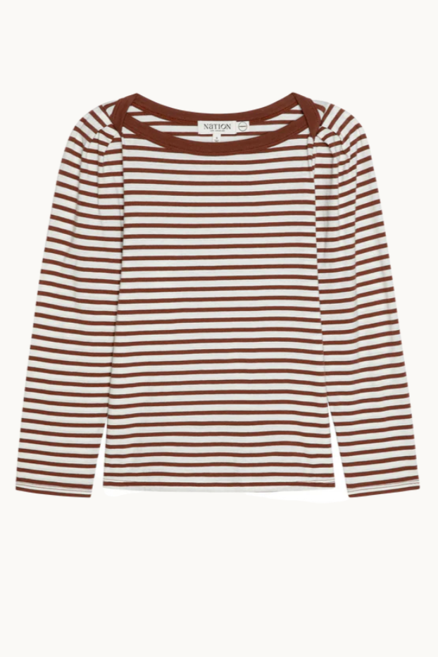 Elevate your style effortlessly with the Amelie Envelope Neck Top in Sable Stripe. Featuring a flattering envelope neckline, long sleeves, and a sleek slim fit, it’s tailored with subtle shoulder pads and delicate knife pleats for that perfectly polished vibe—no extra fuss needed. Stylishly straightforward and ready to brighten up your wardrobe with a playful twist!