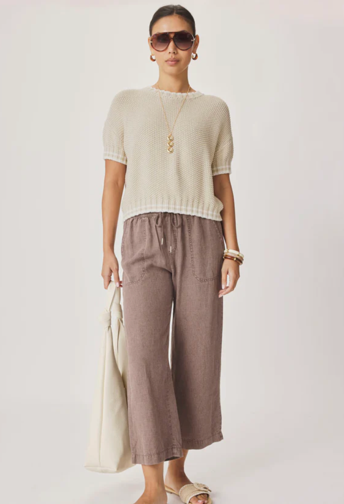 Annmarie Short Sleeve Sweater- Light Fawn/Shell