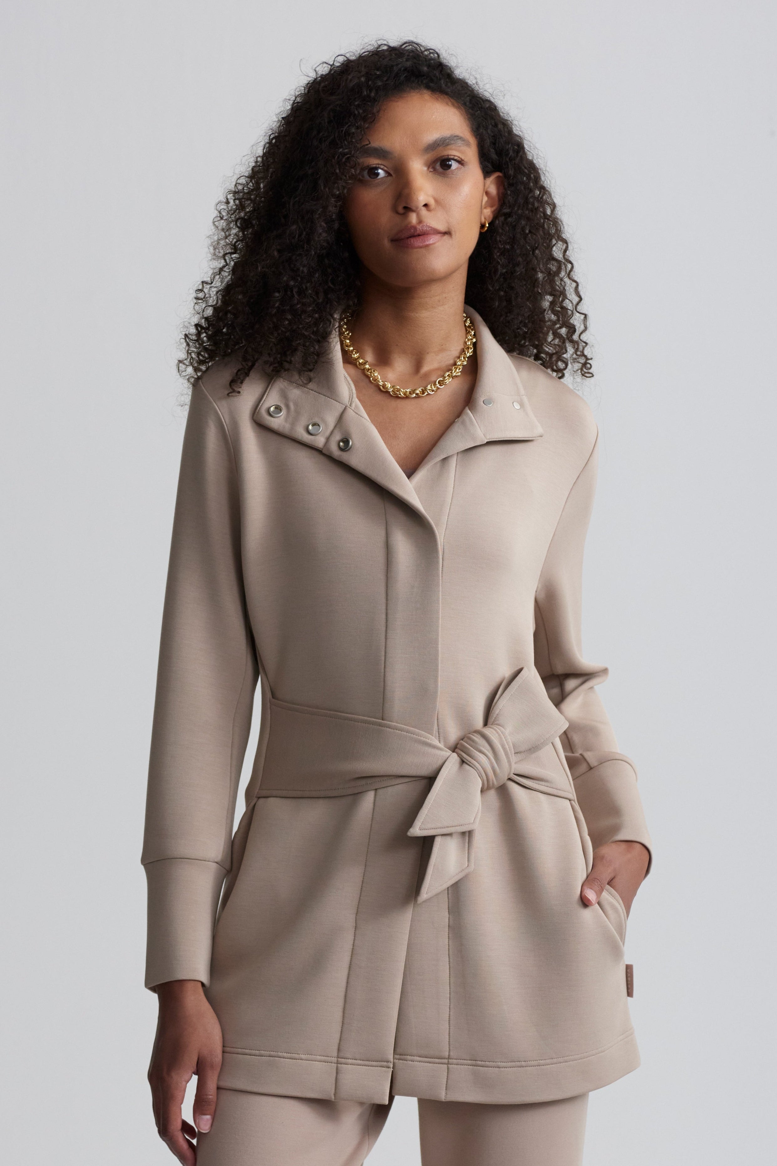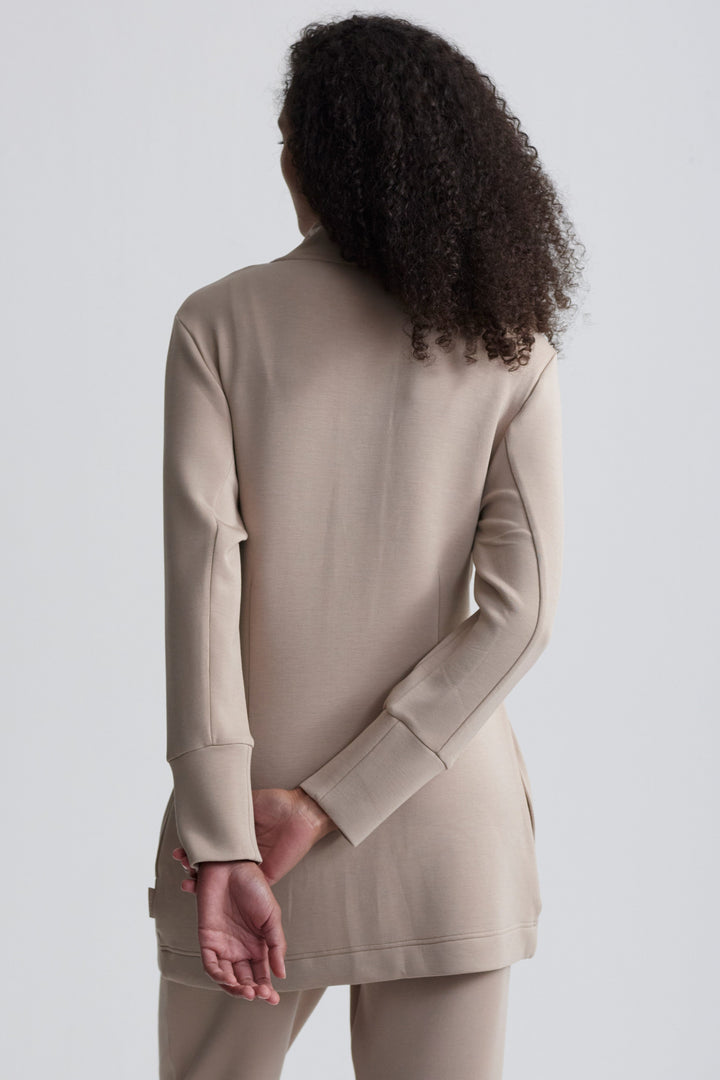 Crafted in Varley's signature DoubleSoft® fabric, the Anset Jacket is a versatile and contemporary must-have. With a high neck, panelled sleeves, and snap fastenings, this jacket is designed for both style and functionality. Wear it multiple ways and enjoy the modern, fitted silhouette with side seam pockets for added convenience.