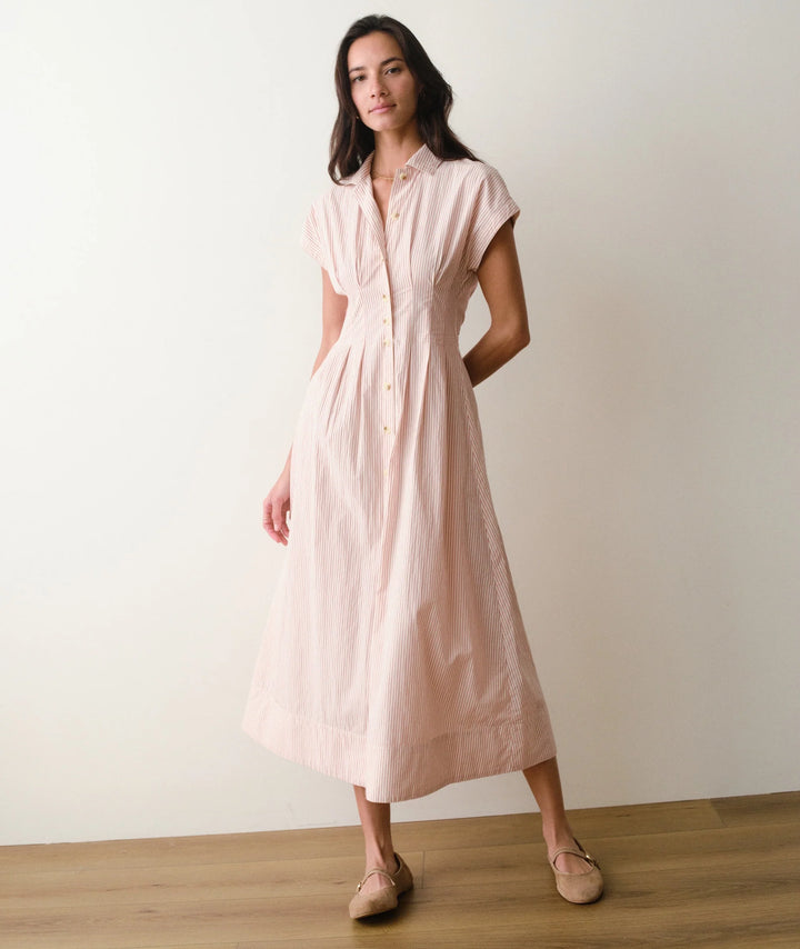 The Arden Midi Shirt Dress combines premium Pima Cotton with thoughtful construction details designed for both comfort and polish. Strategic pin tucking at the waist creates flattering definition, while back stretch allows unrestricted movement throughout your day. This timeless silhouette balances classic shirt-dress proportions with refined feminine touches, making it equally at home in professional settings or elevated casual wear.