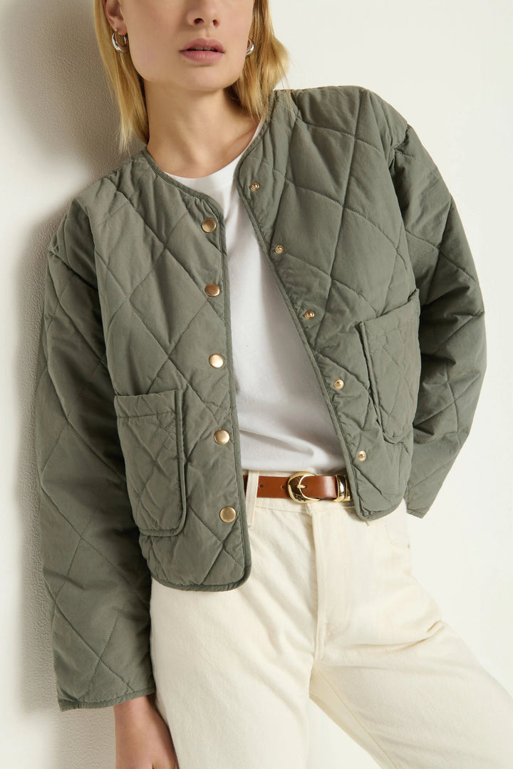 Meet your new favorite layer for those crisp, breezy days! The Aspen Quilted Jacket in Castor Grey is made from 100% cotton, featuring a boxy, cropped fit that adds a playful edge to any outfit. With handy pockets and easy button snaps down the center, it’s all about effortless style and cozy comfort wherever you go.