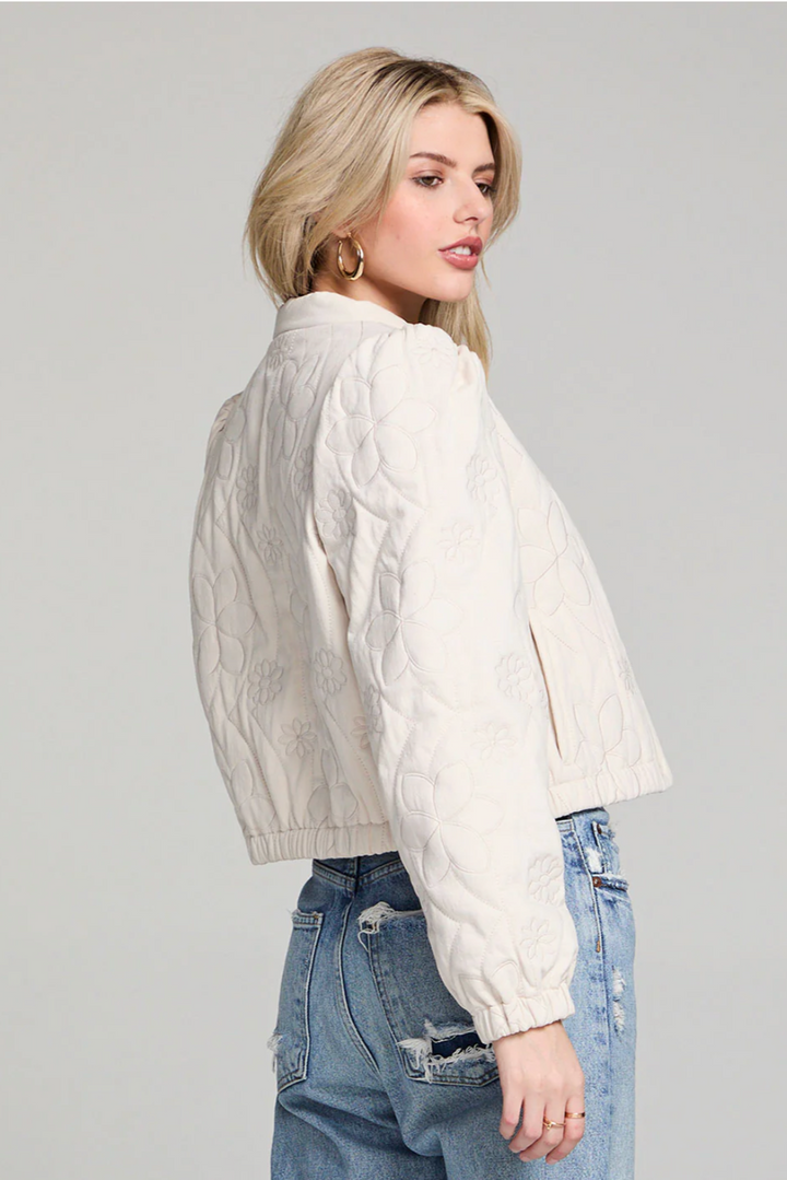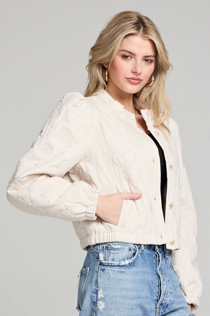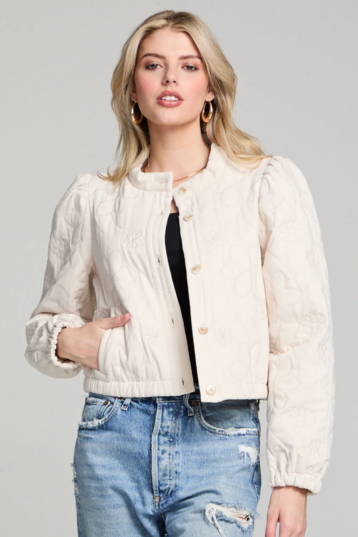 Expertly crafted with a quilted design, this Autumn Bomber Jacket in a light cream hue offers a versatile and stylish addition to your wardrobe. The puff sleeves and button front closure add a touch of elegance, making it suitable for any occasion, day or night. Stay warm and chic all season long.