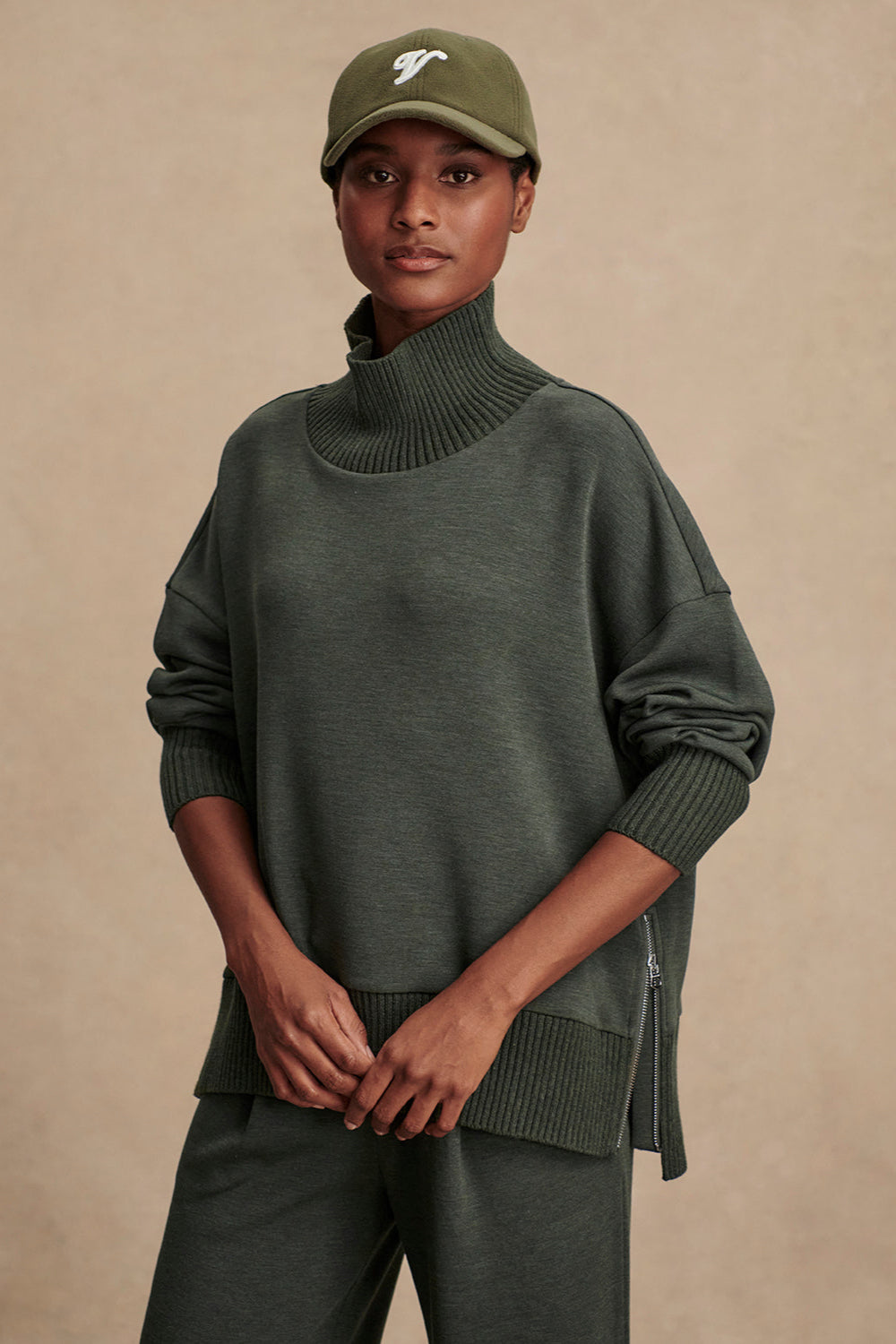 Barker High Neck DoubleSoft Sweatshirt- Olive Marl