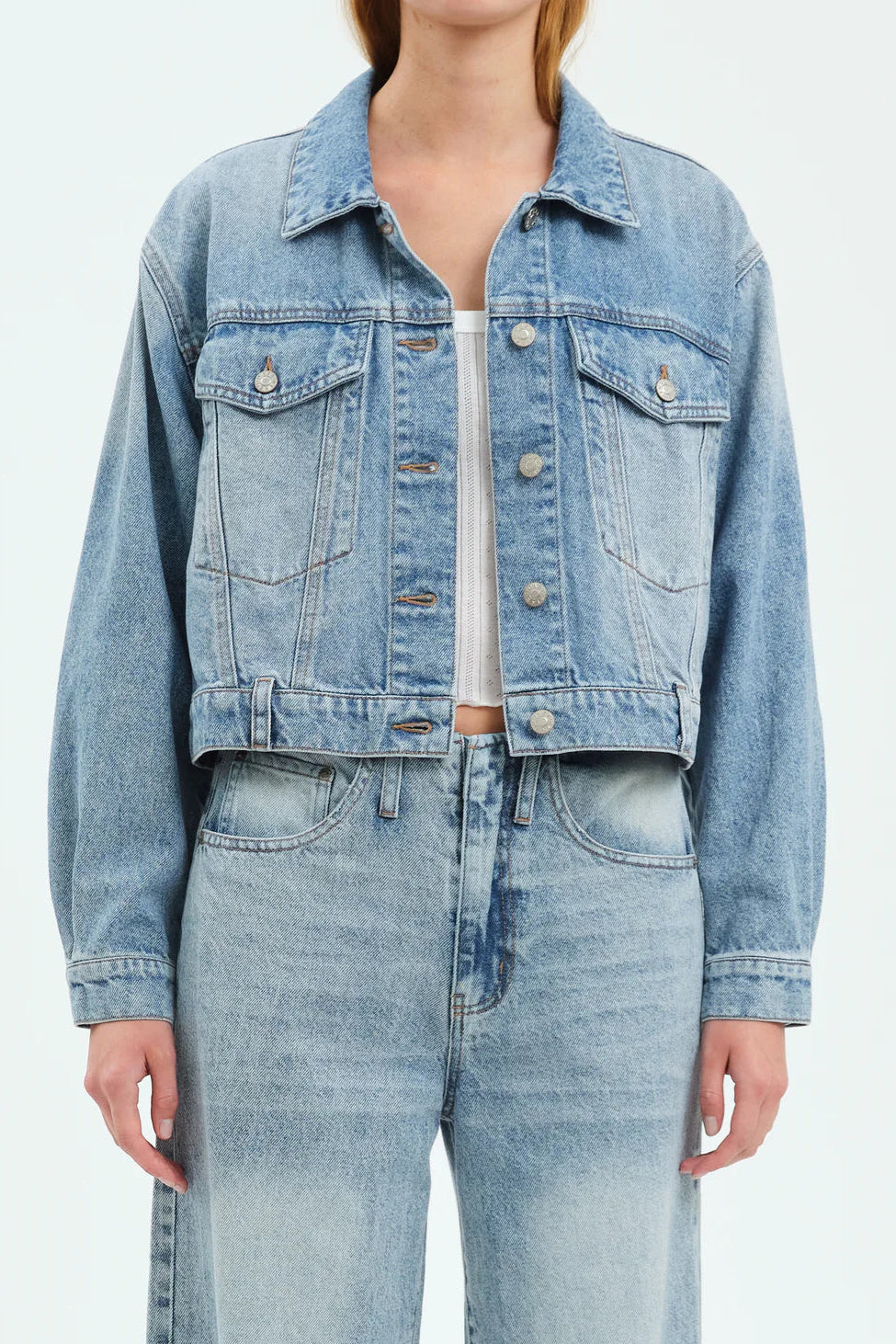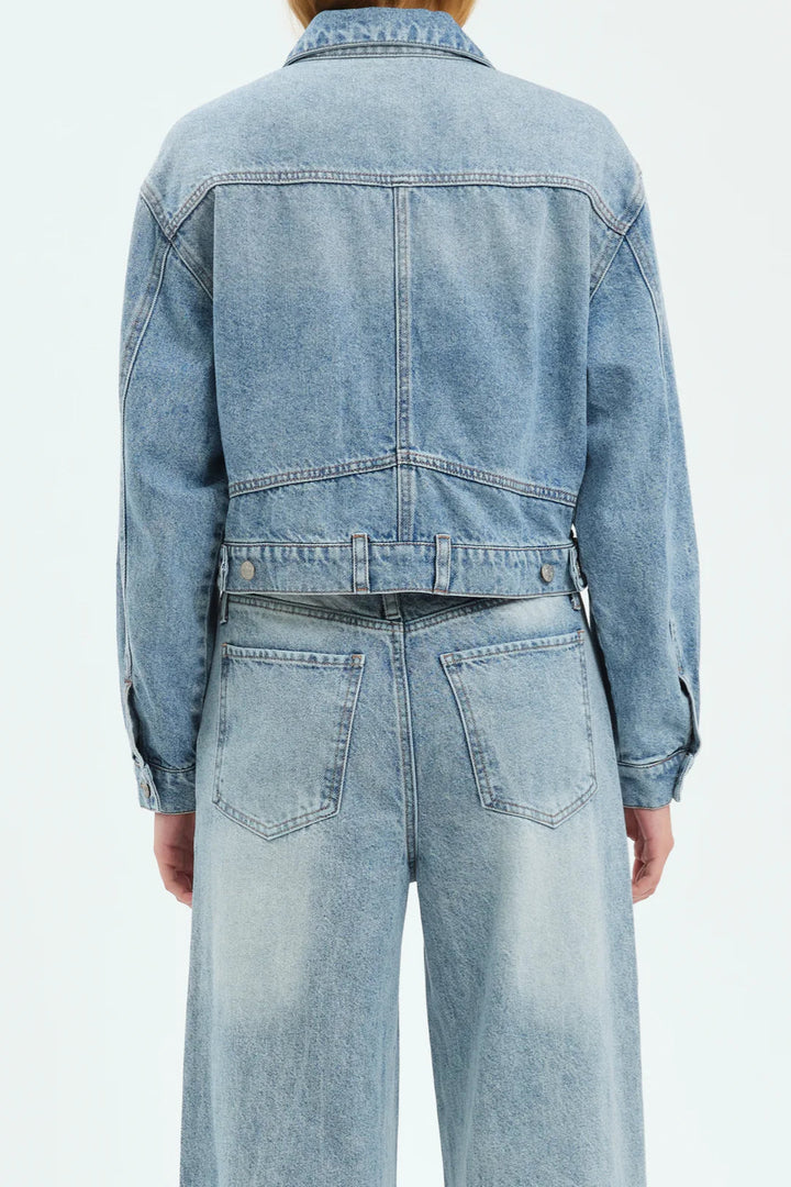 Introducing the Bestie Cropped Denim Jacket- Caught Up. Made from 100% cotton, this jacket boasts a structured, cropped fit that hits perfectly at the waist. The versatile medium wash makes it a staple piece in your closet. Elevate any outfit with this must-have addition.