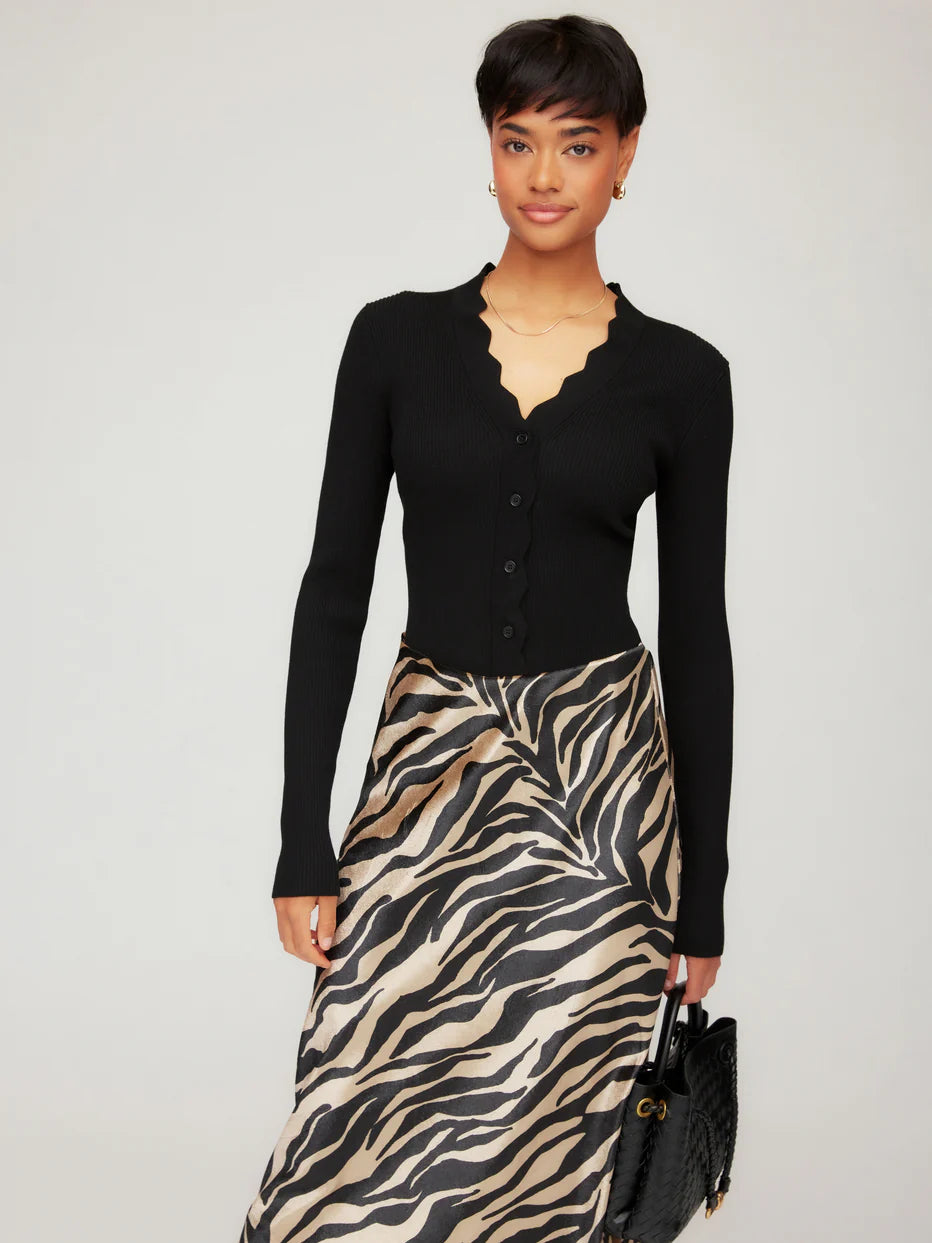 Bliss Scallop Edge Cardigan- Black