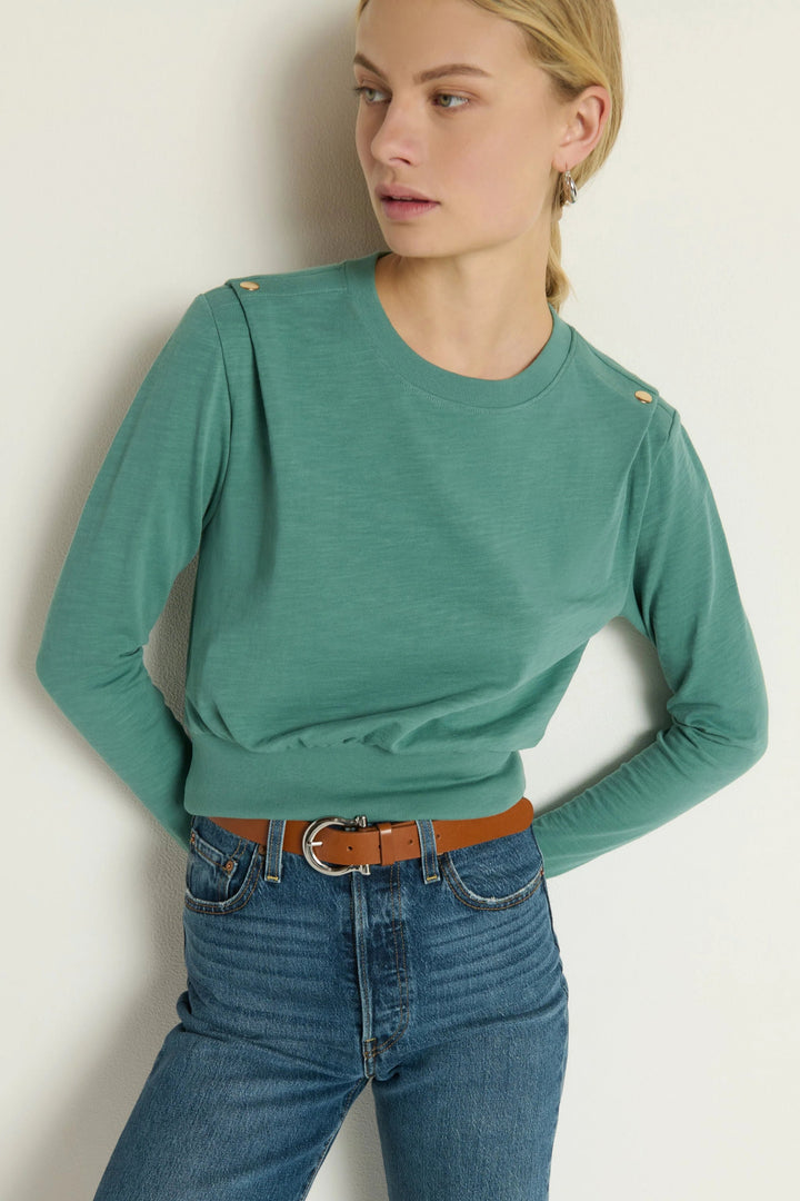 Meet your new favorite go-to: the Brixton top. With a timeless crew neckline and a sleek, slim fit, it effortlessly complements any outfit. Those playful button snaps at the shoulder aren’t just cute—they make dressing up or down a breeze. Perfect for wherever your day takes you!