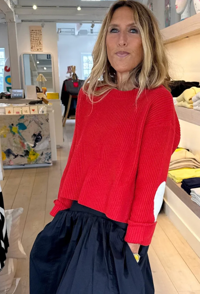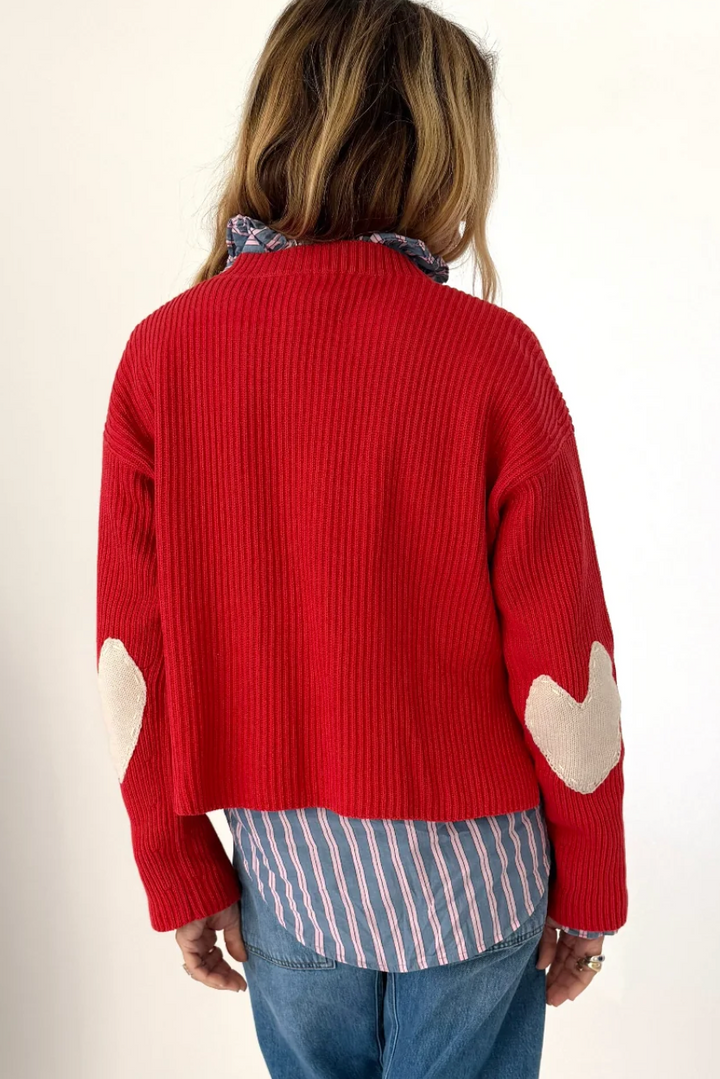 Meet the Brooklyn Sweater—short, bold, and endlessly versatile. Crafted from 100% cotton ribbed knit, this statement piece features distinctive Imperfect Heart contrast patches that elevate any casual outfit. The chunky ribbed texture and cropped silhouette (19" body length) make it perfect for layering or wearing solo. Imported. Size up for a relaxed, oversized fit.
