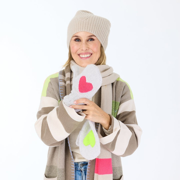 Introducing our Happy Luxury Cashmere Beanie in soft light mushroom—the cozy essential that plays well with everything in your closet. Crafted from 100% cashmere, this classic beanie features Kerri's Iconic Imperfect Heart patch front and center, adding a touch of whimsy to your everyday style. Luxuriously soft, endlessly versatile, and unapologetically imperfect in the best way possible.