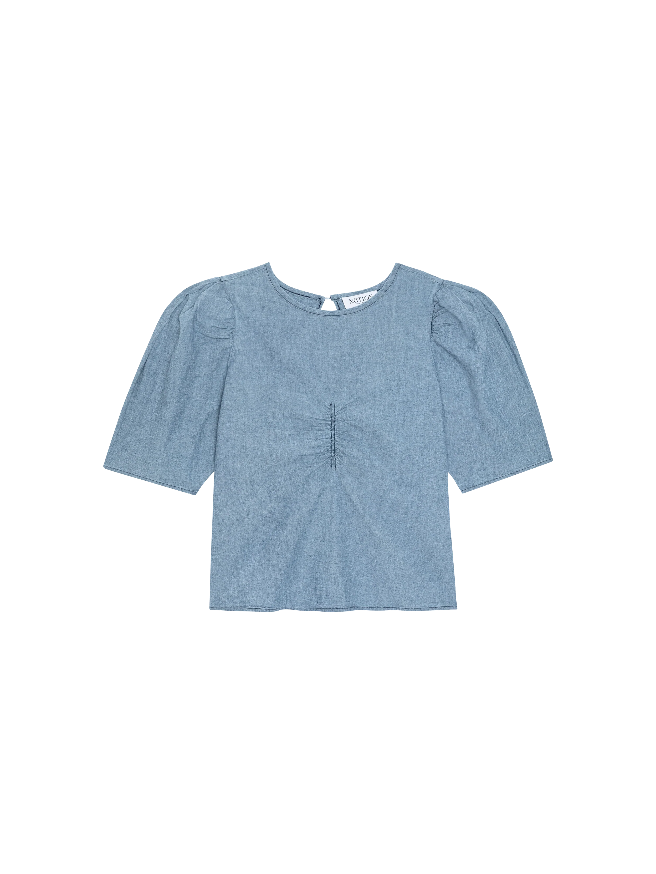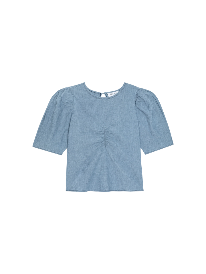 Cecily Baby Doll Top in soft Portuguese chambray combines timeless appeal with modern ease. Subtle shirring at the waist creates gentle definition, while relaxed puff sleeves add a touch of understated elegance. The lightweight fabric drapes beautifully for an effortless, versatile piece that transitions seamlessly from casual to dressed-up moments. A wardrobe essential that feels as good as it looks.