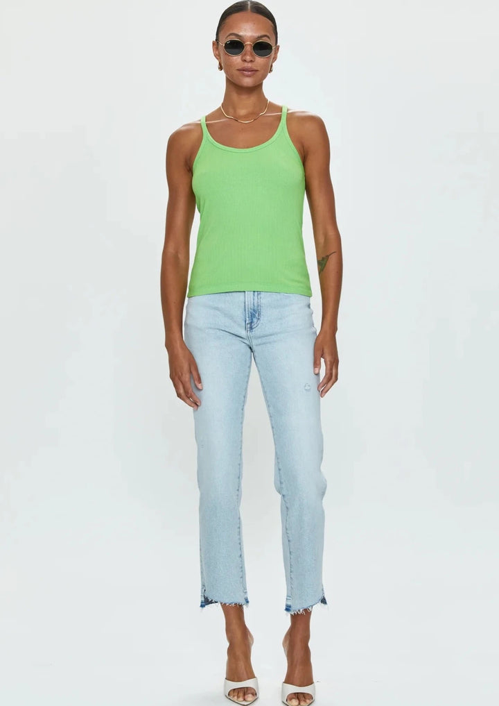 Entering uncharted territory. A high rise, figure hugging waist that falls to a sophisticated straight leg silhouette with a cropped, frayed hem with color washing - crafted from our classic comfort-stretch denim for an expert fit. Voyager Vintage is in light blue wash with cool undertones, featuring vintage inspired distressing and fading, and a high-low ankle hem. 27" inseam