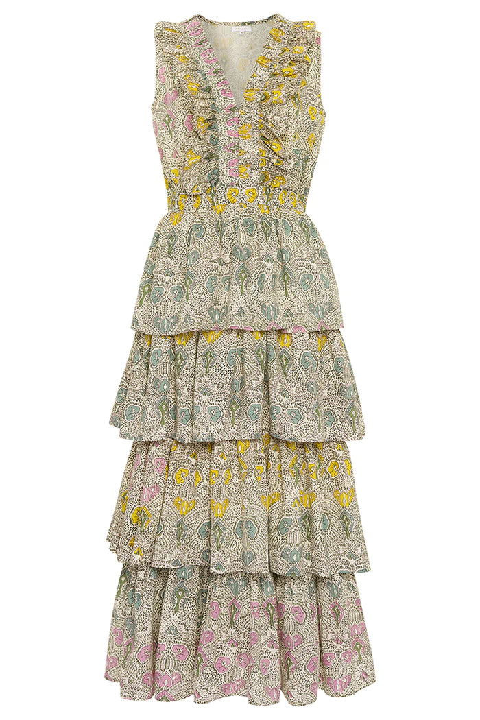 Look beautiful in the Charlotte Maxi Dress- Sunrise Print. Enjoy an elegant ruffle neckline and skirt, and an elastic waistband for a flattering fit. The unique floral print allows you to dress up or down to suit any occasion. Feel great in a cotton blend fabric that is designed to make you feel your best. Show off your style and grace in the Charlotte Maxi Dress in the Sunrise Print!