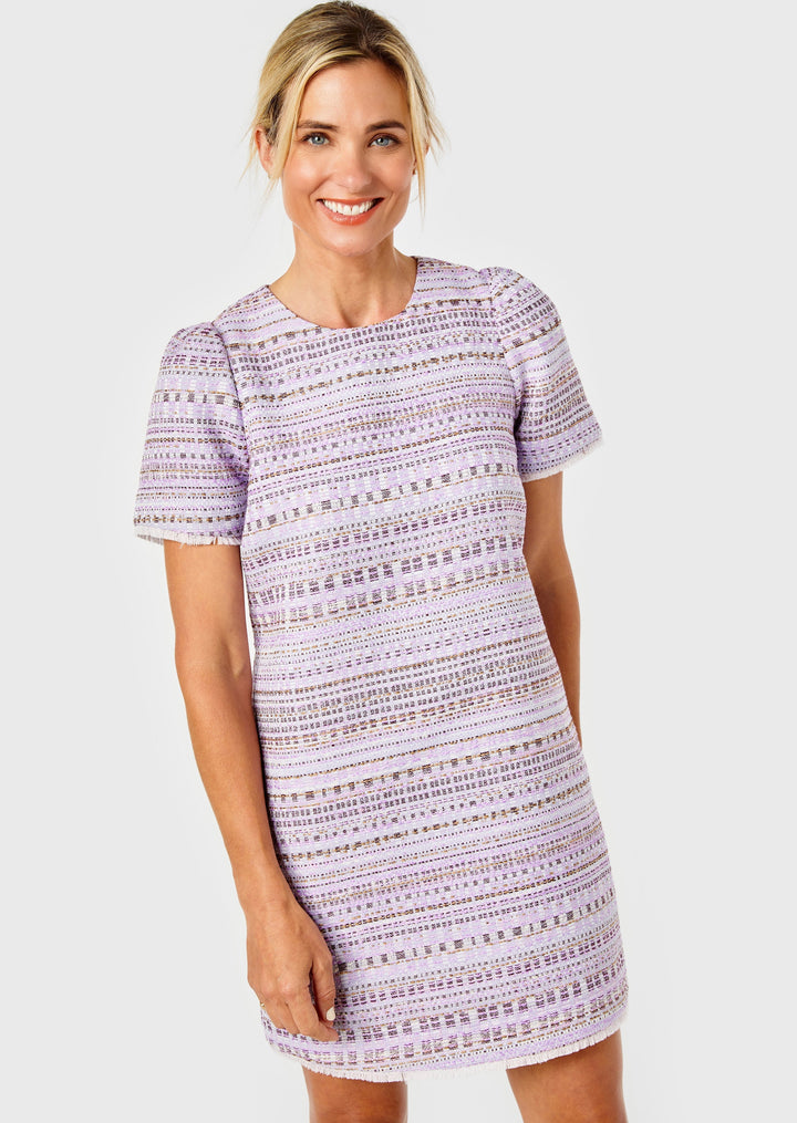 Chloe Tweed Dress- Lavender Stripe