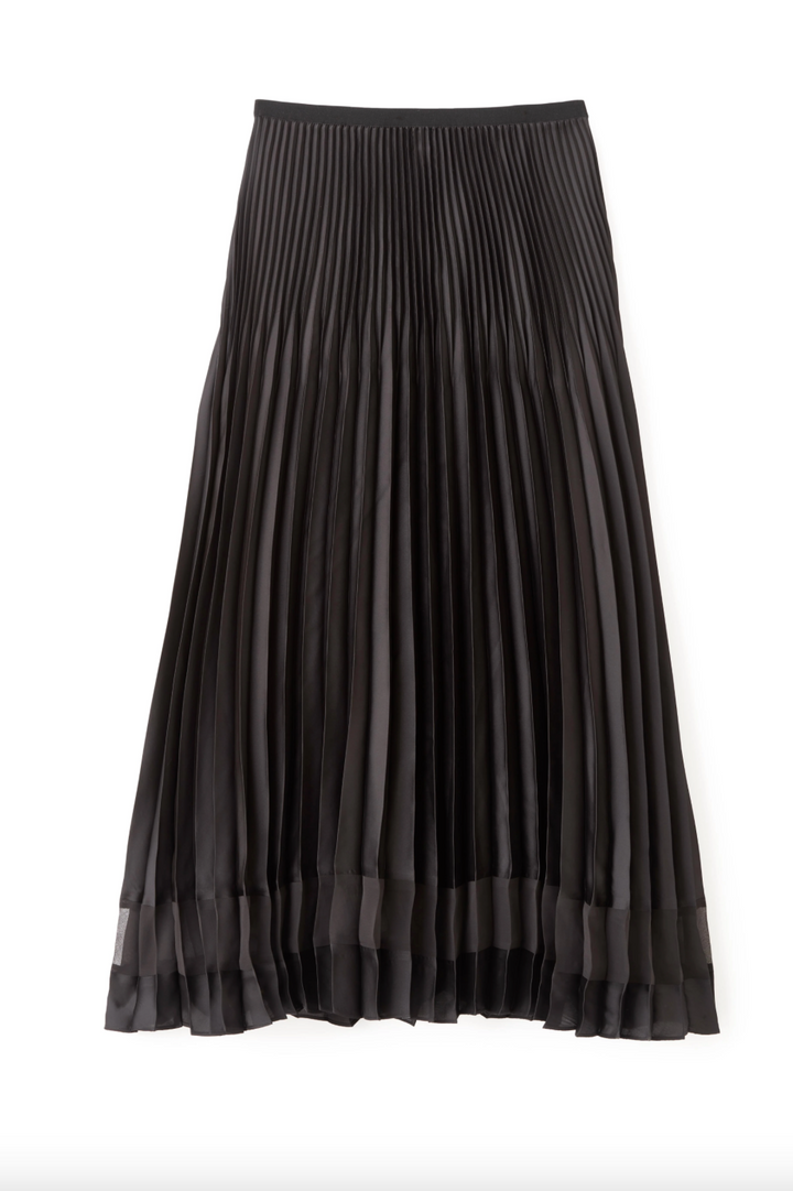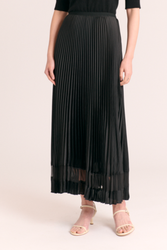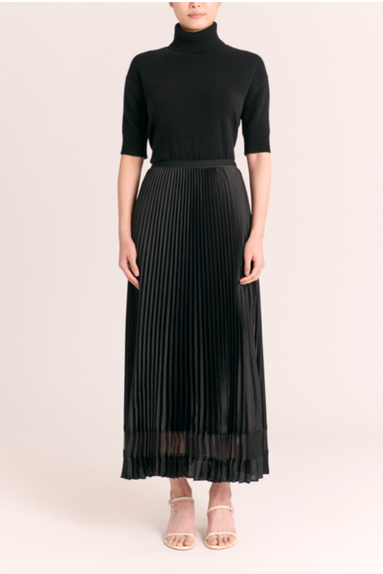 Claudia Satin Pleated Skirt- Noir
