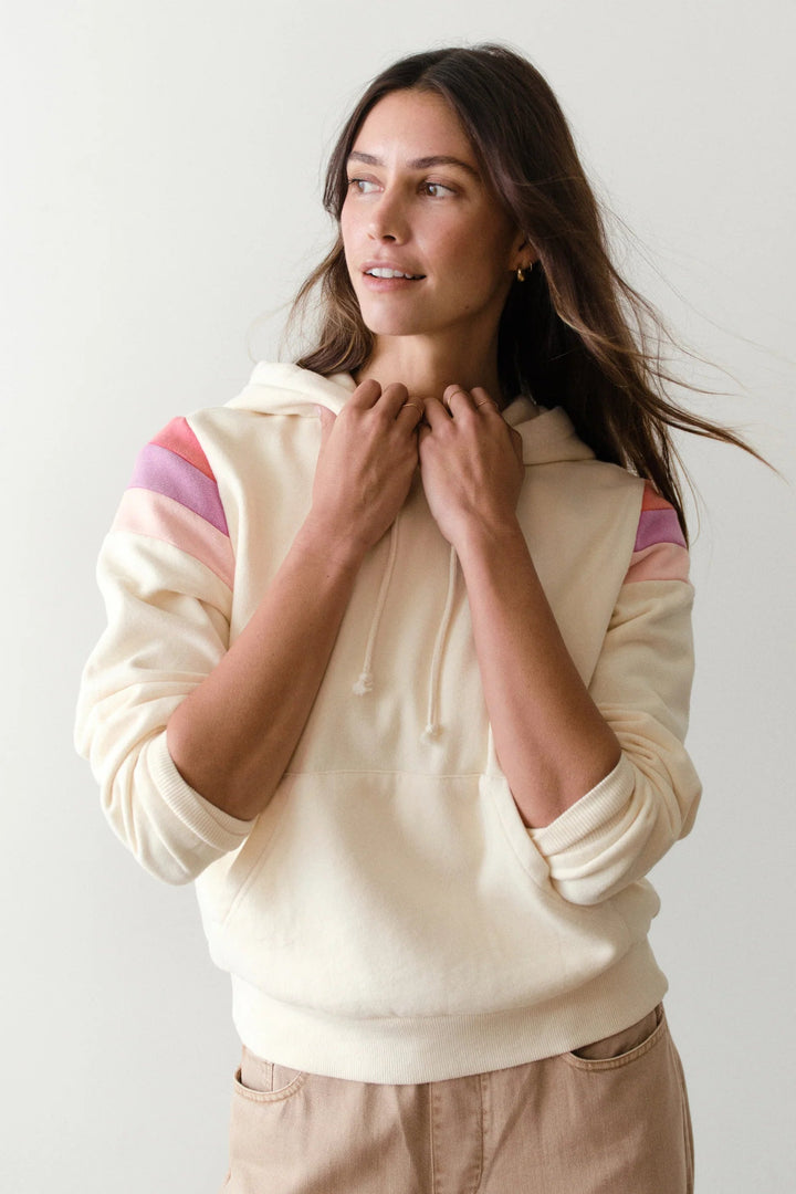 Meet your new favorite hoodie—the one that's equal parts adorable and irresistibly cozy. Crafted from Marine Layers Cloud 9 fleece that feels like wearing a cloud, this Banks hoodie features charming vintage color blocks across the shoulders for a touch of personality. The relaxed fit gives you that effortlessly cool, oversized vibe without any of the guilt of borrowing from someone else's closet. Soft, stylish, and entirely yours to keep.