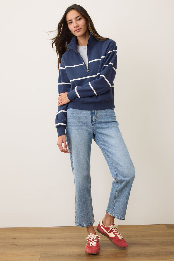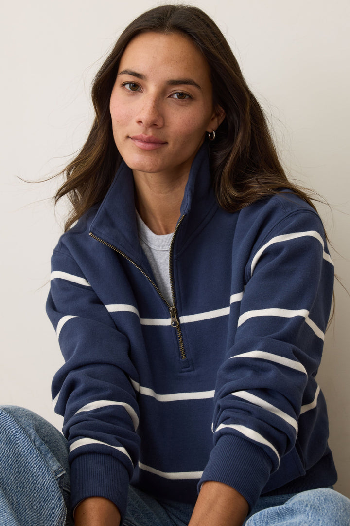 Cloud 9 Fleece Half Zip- Navy/White Stripe