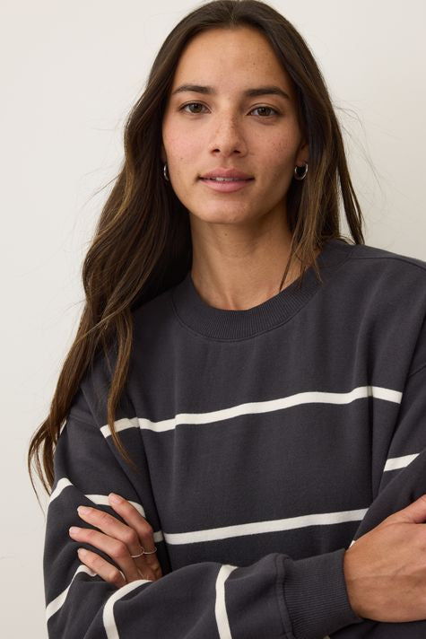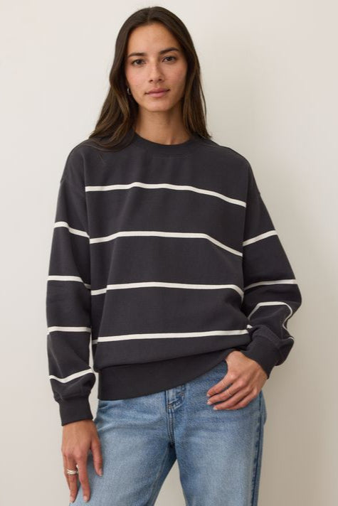 Cloud 9 Fleece Oversized Crewneck- Black/White Stripe