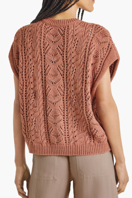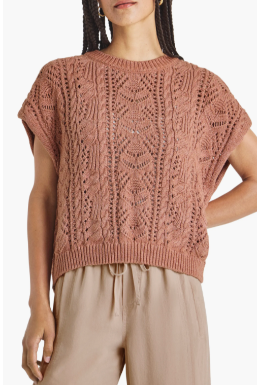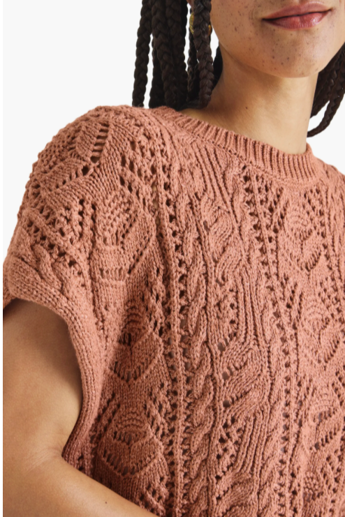 Mixed open stitching creates a varied design in this heathery and loose-fitting dolman-sleeve sweater.