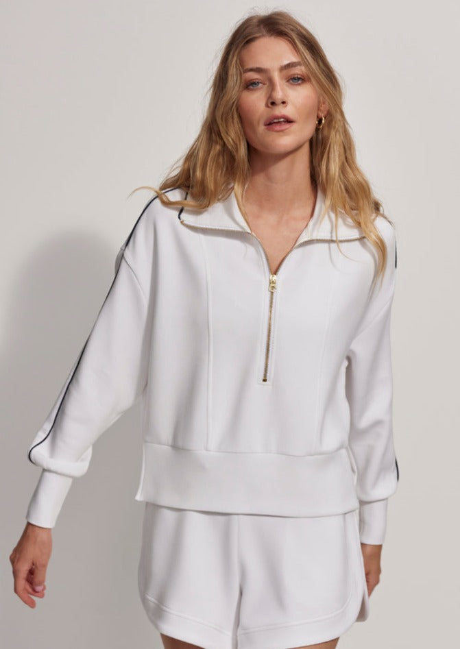 Davenport Half Zip Sweatshirt- White **Final Sale**