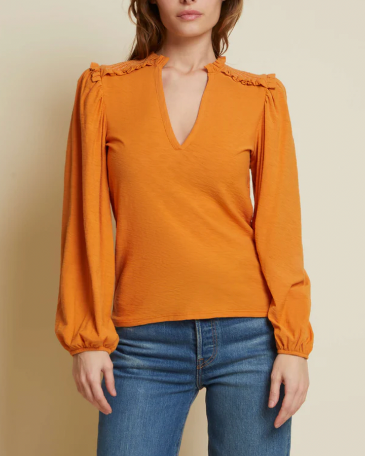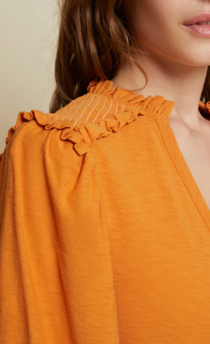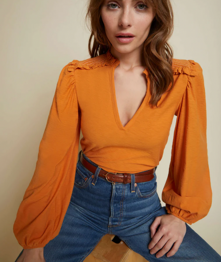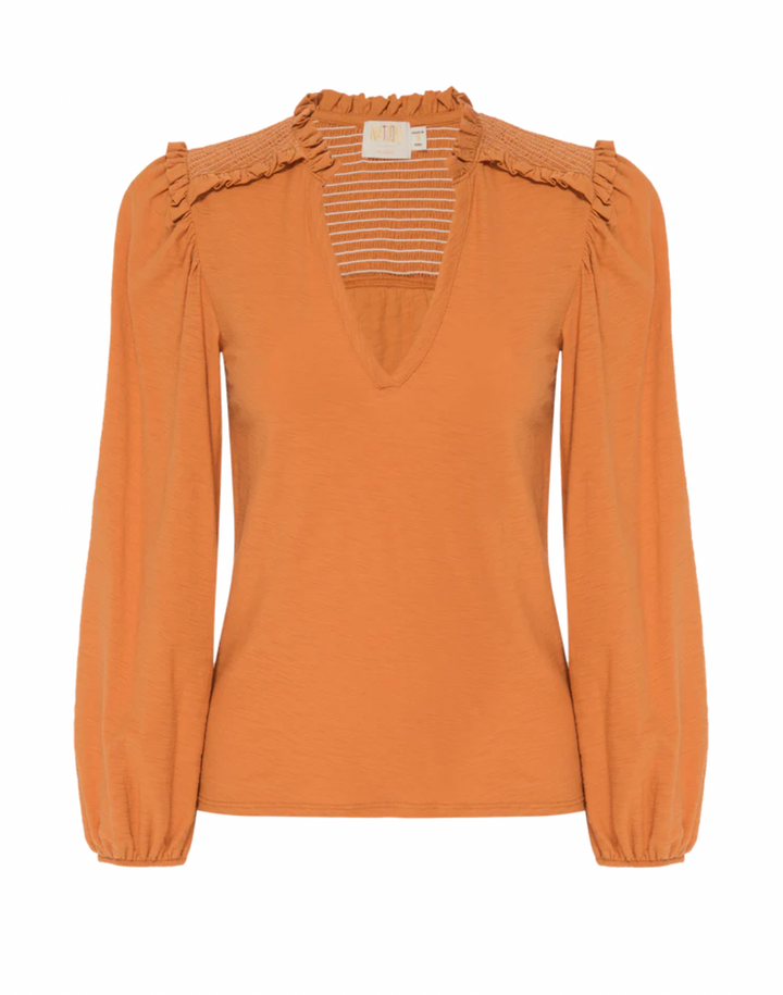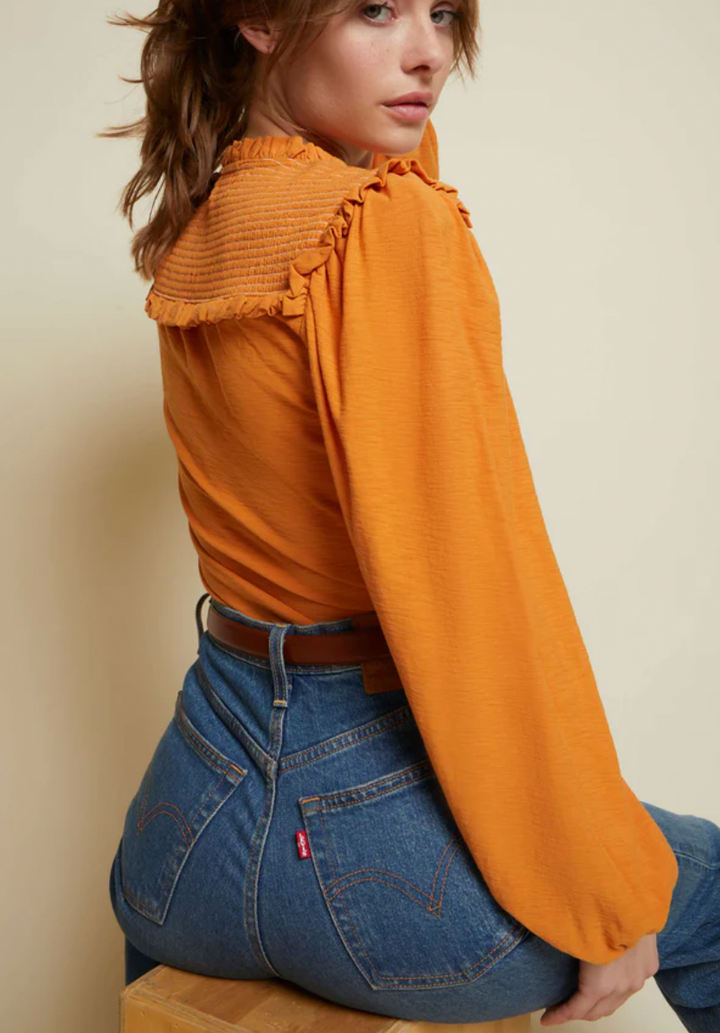 Dolly Smocked Shoulder Long Sleeve Blouse- Amber