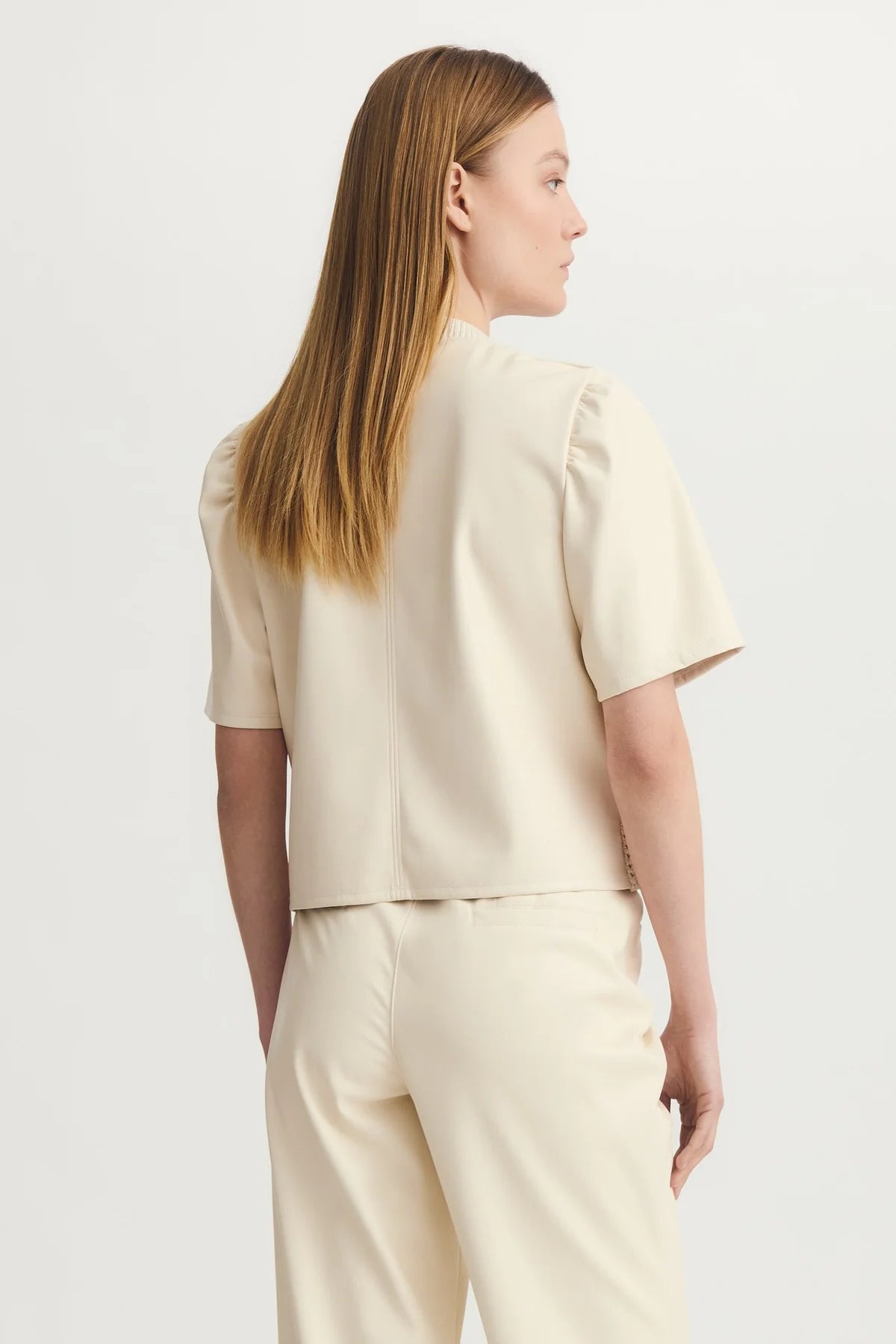 Effortlessly transition from day to night in this charming crochet and vegan leather short sleeve jacket. The warm cream hue pairs beautifully with its unique detailing, creating a piece that's equal parts cozy and chic. Perfect for layering over your favorite tee or dressing up with evening wear, this versatile topper brings texture and personality to any outfit. Cruelty-free construction meets artisanal craftsmanship in one delightfully wearable design.