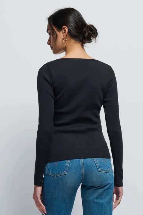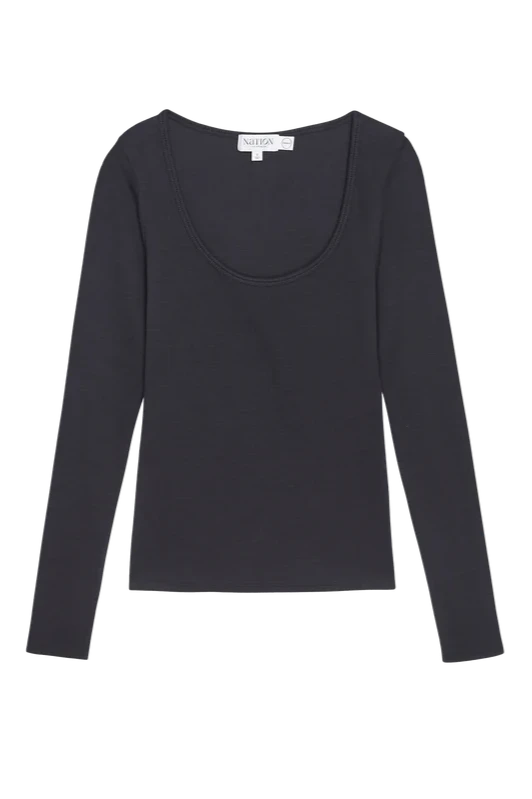 The perfect scoop neck long sleeve in Nation Ltd's responsible Organic Rib. Pairs perfectly with anything and everything. (Really.) Form fitting, bra friendly.
