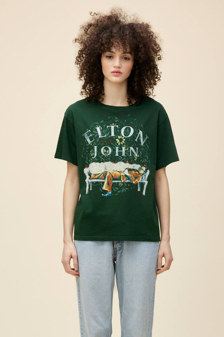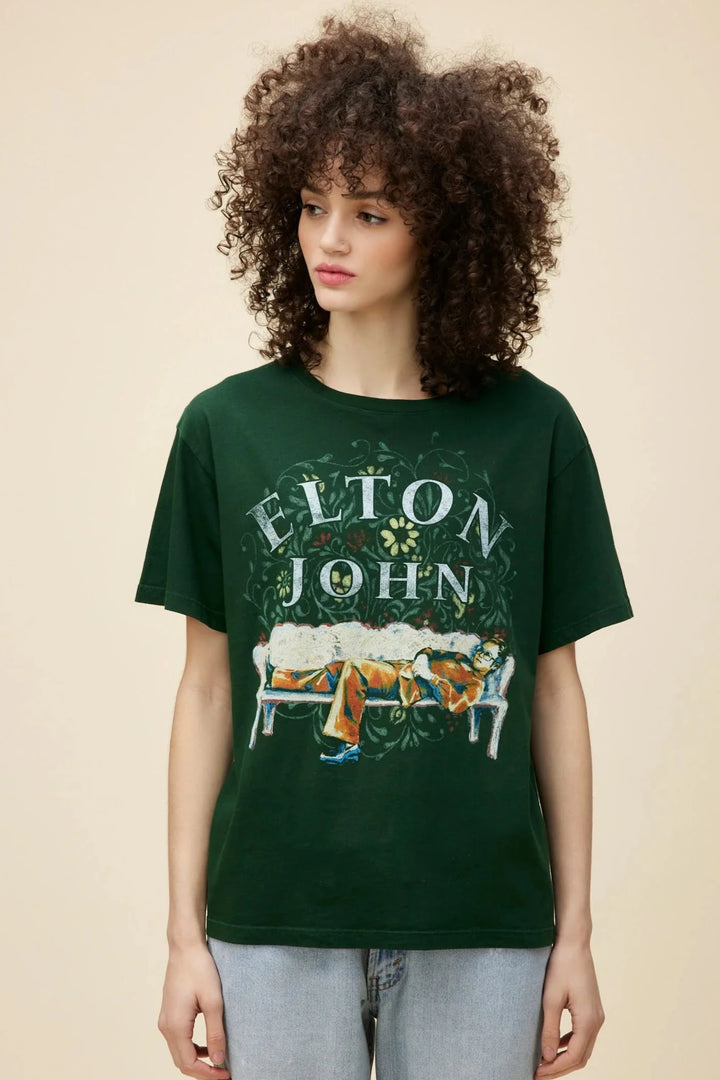 Elton John Floral Boyfriend Tee- Vintage Green **Final Sale**