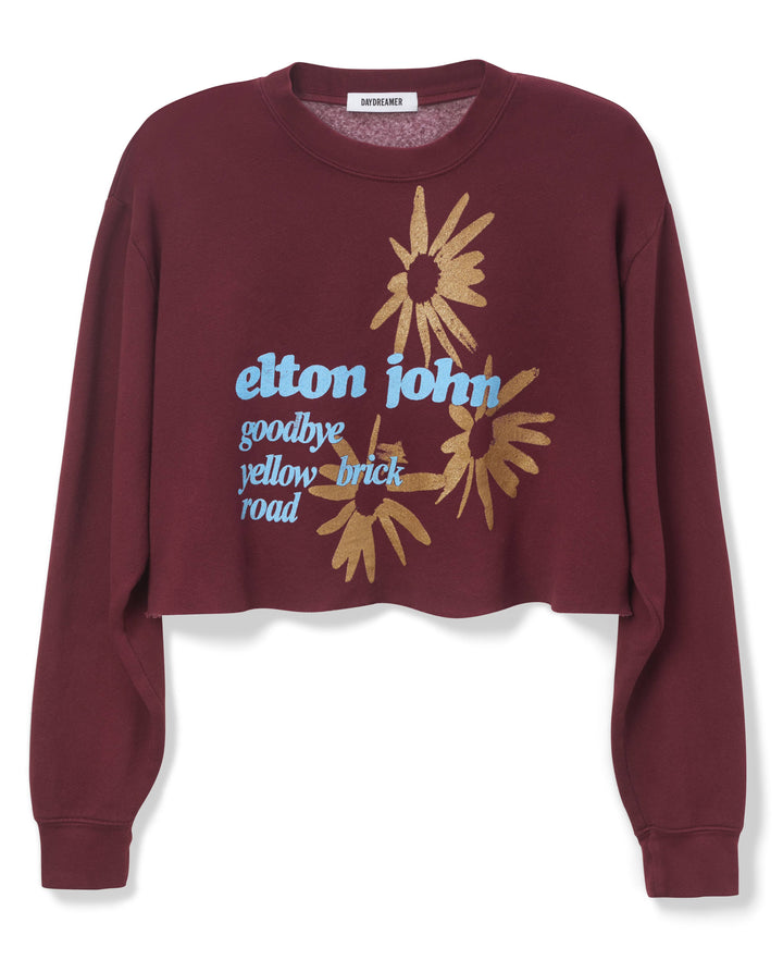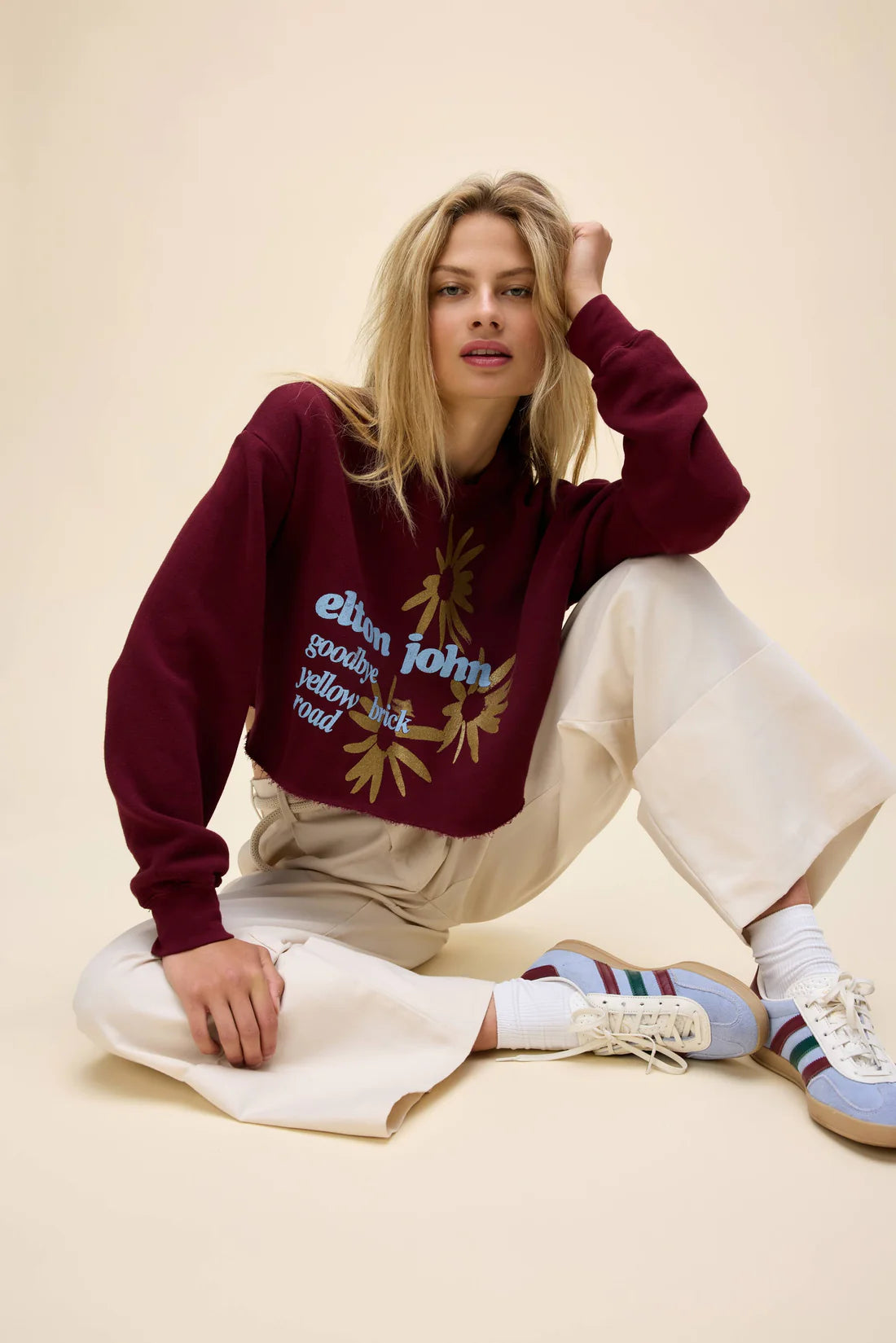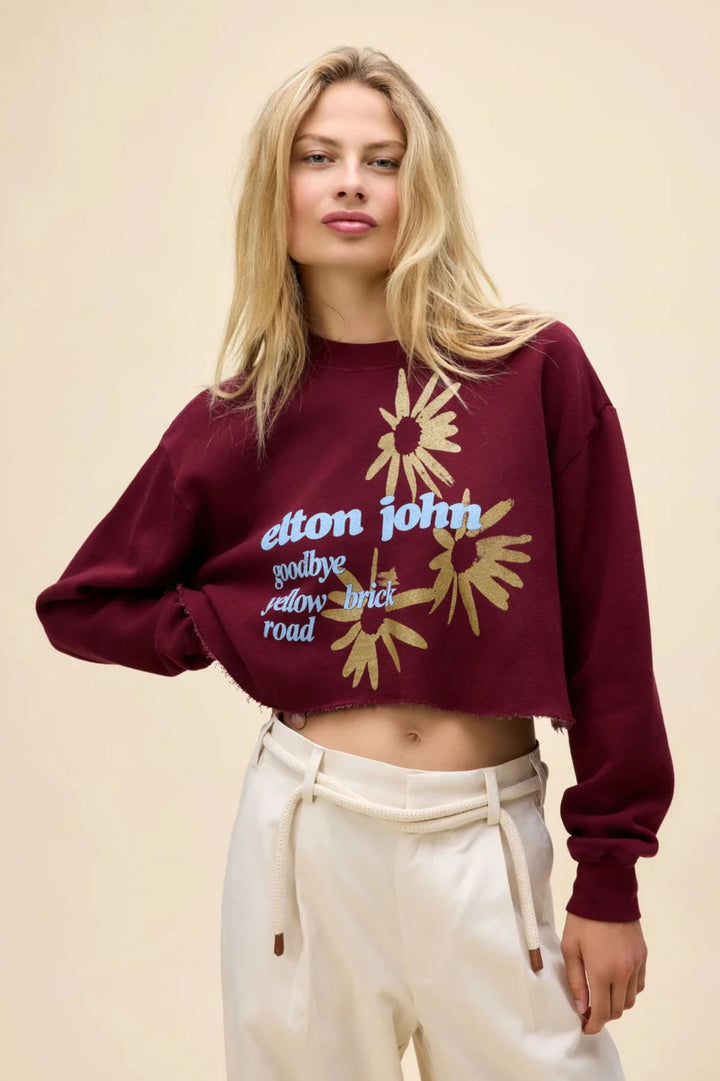 Elton John Yellow Brick Road Cutoff Sweatshirt- Dark Cherry **Final Sale**