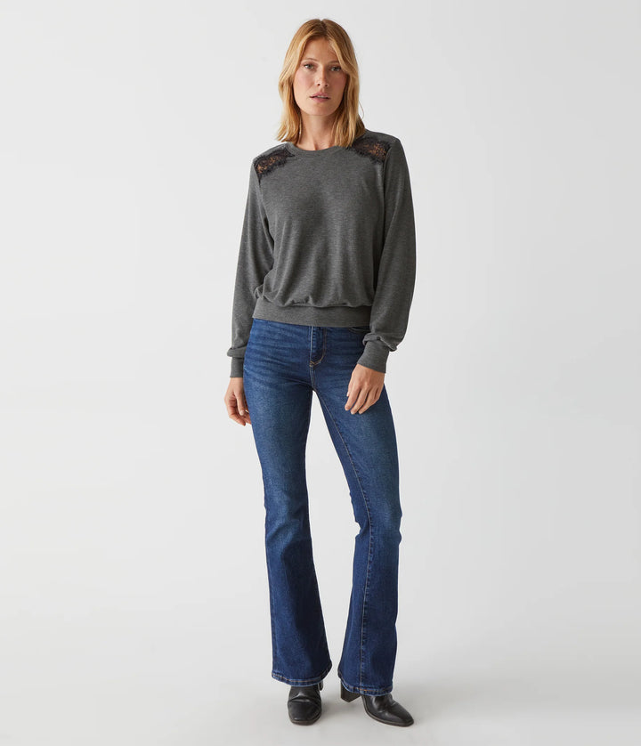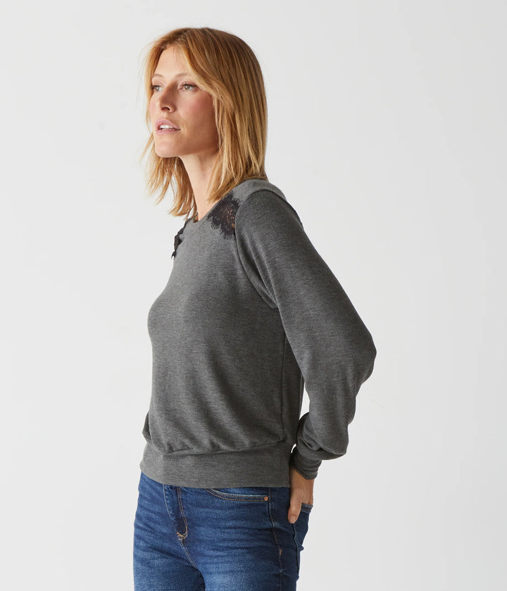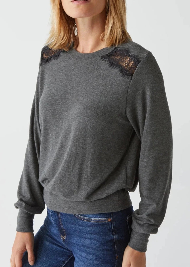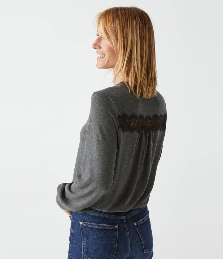 Esther Pullover With Lace Trim- Charcoal *FINAL SALE*