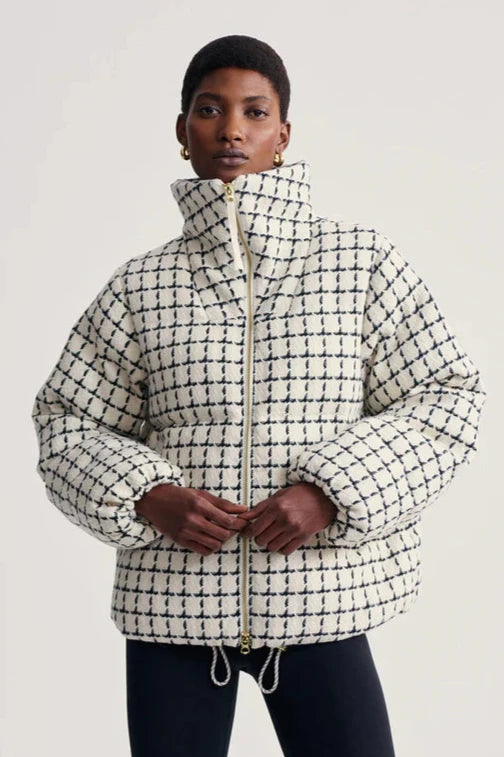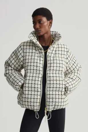Eugene Check Short Puffer Coat- Egret Check**Final Sale**