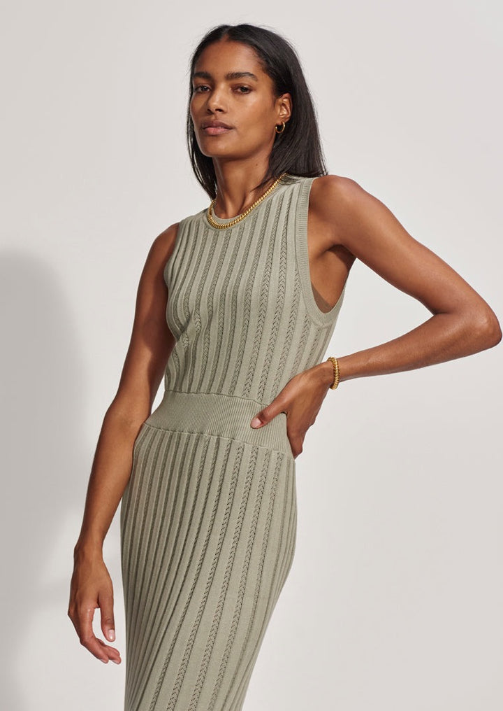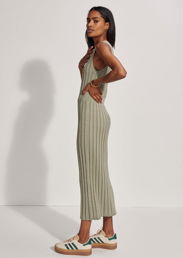 Introducing the Florian Knit Dress, your new summer staple. Made from lightweight knit fabric in a soft sage green hue, this midi length dress features a form-fitting silhouette and ribbed waistband for a timeless design. Wear it everyday or as a beach cover-up - versatile and effortlessly chic.