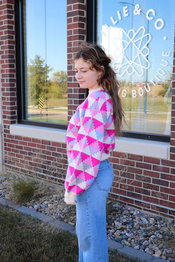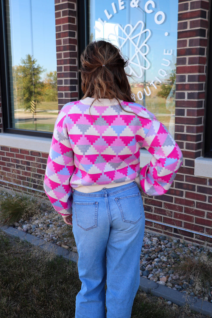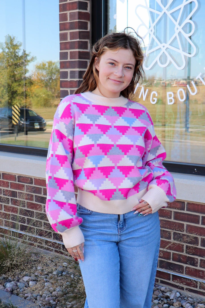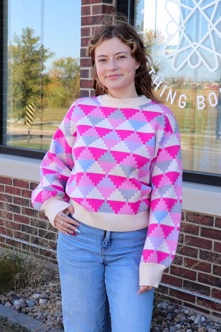 Geometric Pattern Sweater—Pink/Grey