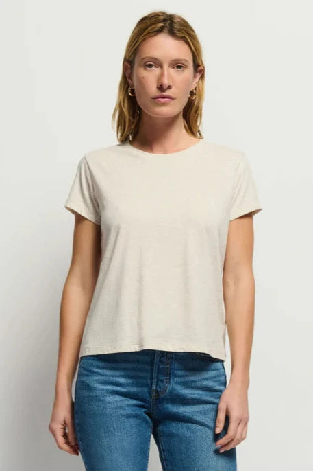 Goldie Boxy Crew Tee- Heather Oatmeal