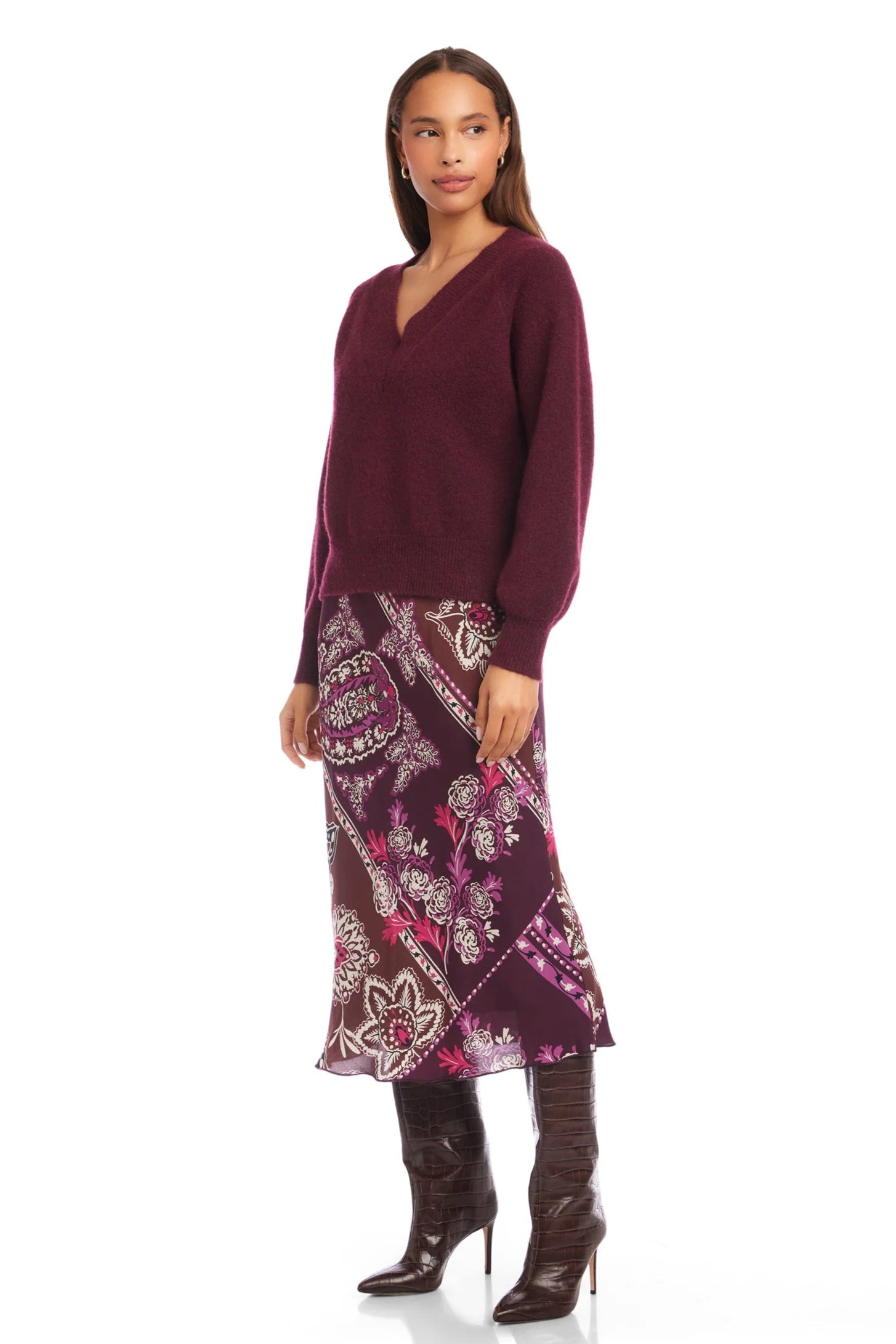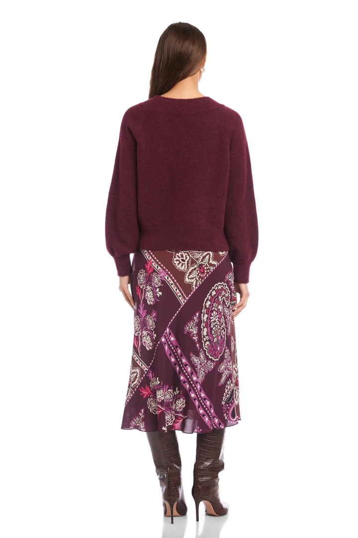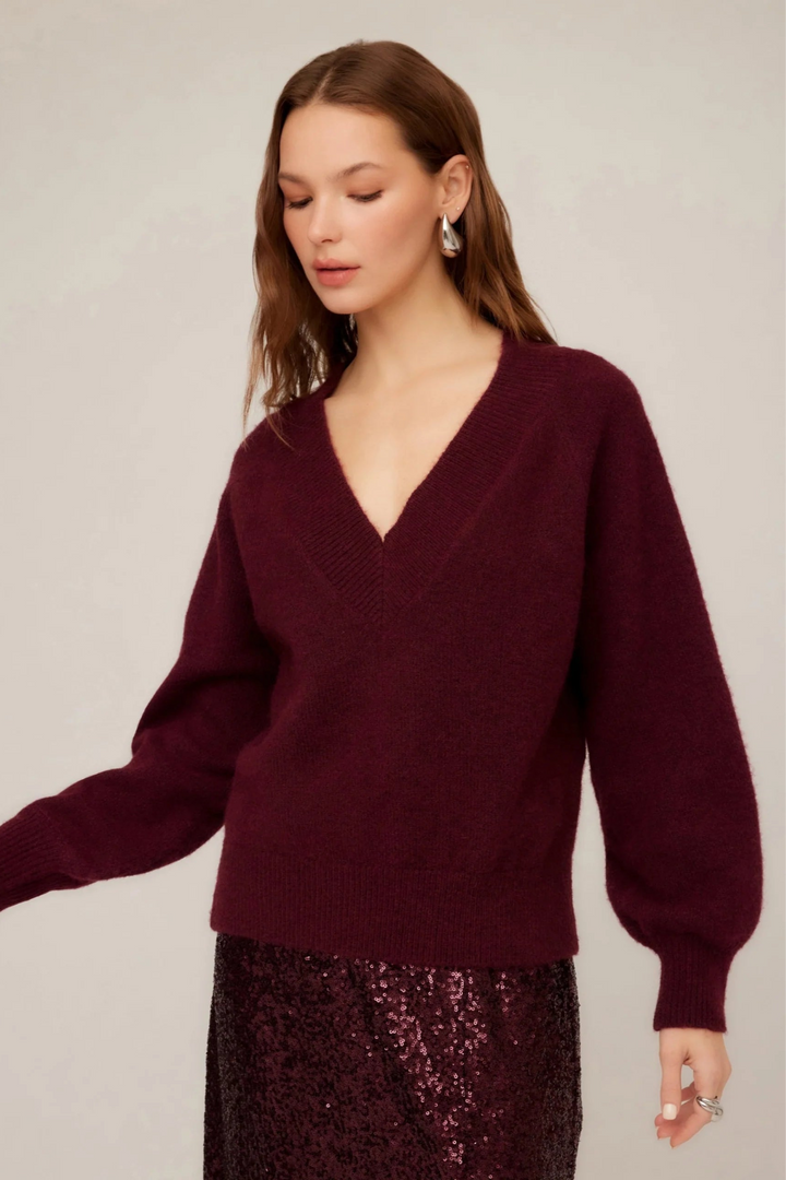 Heather V Neck Sweater- Wine