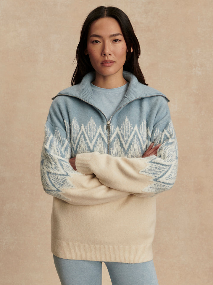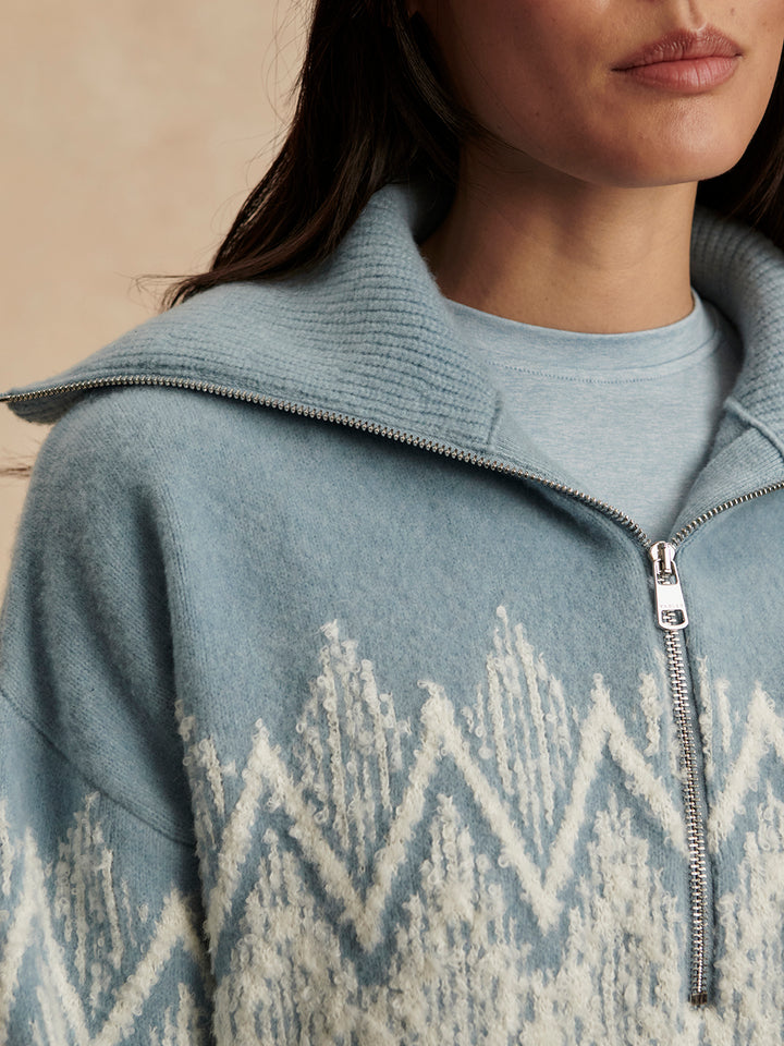 Hedda Fairisle Half Zip- Ashley Blue
