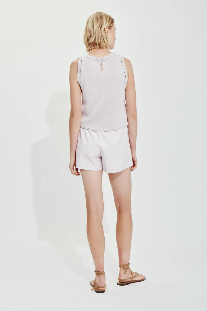 Experience versatile style with the Hudson Vegan Leather Short in Light Lilac. Crafted from the softest pleather, these shorts offer a luxurious feel and a flattering fit. The icy lilac hue adds a subtle yet sophisticated pop of color, perfect for transitioning effortlessly from day to night. Ideal for pairing with casual or dressier tops, this piece combines comfort and chic appeal for a modern, eco-conscious wardrobe.