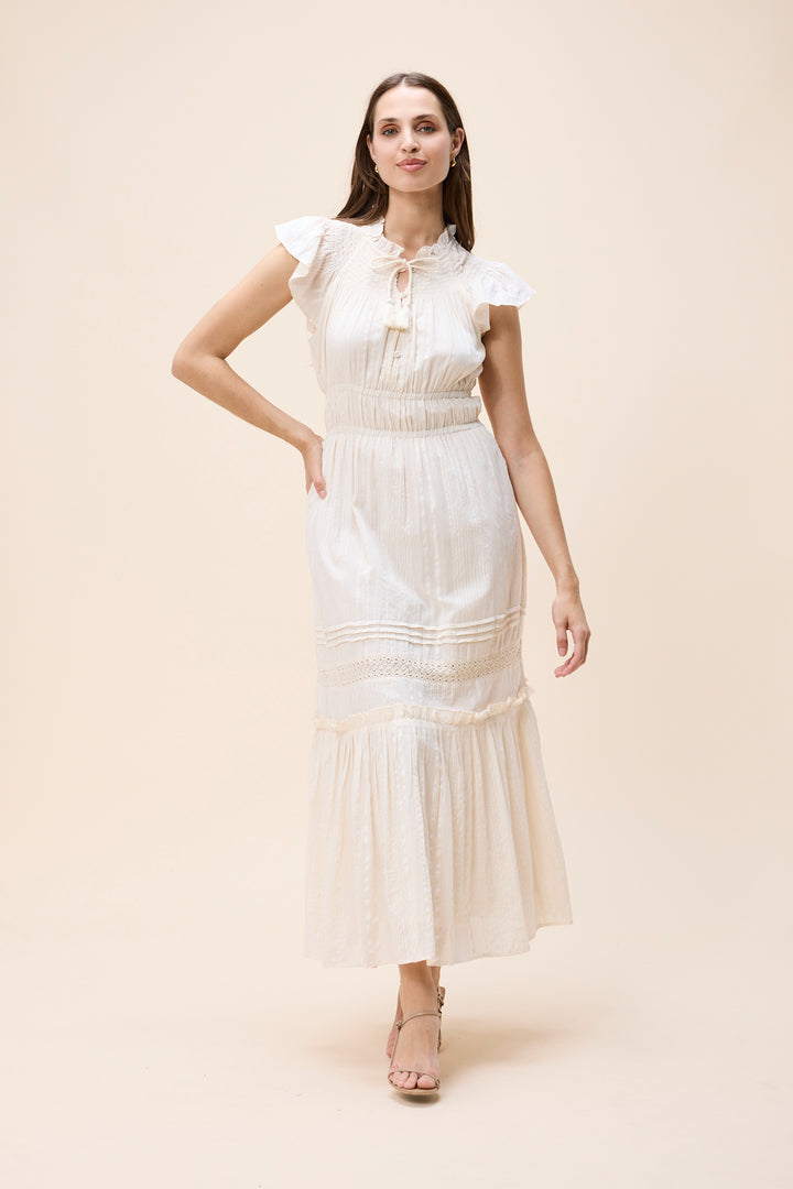 Introducing the Indira Ankle Dress—where artisanal charm meets everyday comfort! This dreamy piece features delicate smocking at the neckline and flutter sleeves that whisper romance with every movement. Crafted from GOTS-certified organic cotton mulmul in a soft buttercream hue, it's breathable bliss for warm days and cool evenings alike. The elastic waistband hugs you just right, creating a flattering silhouette that feels as good as it looks. Ethically handmade in India, this timeless dress transitions seamlessly from brunch to dinner—your new go-to for effortless elegance.