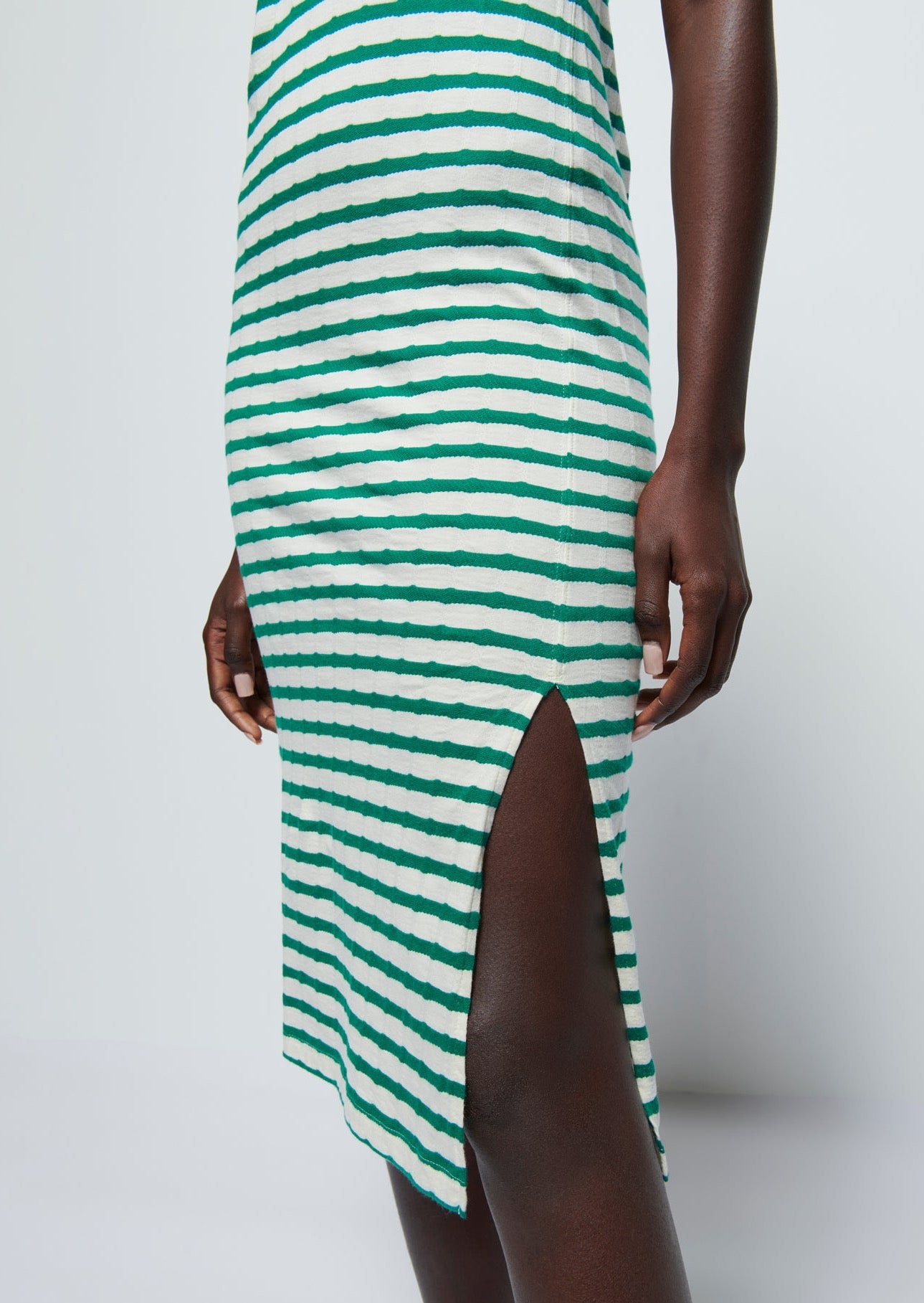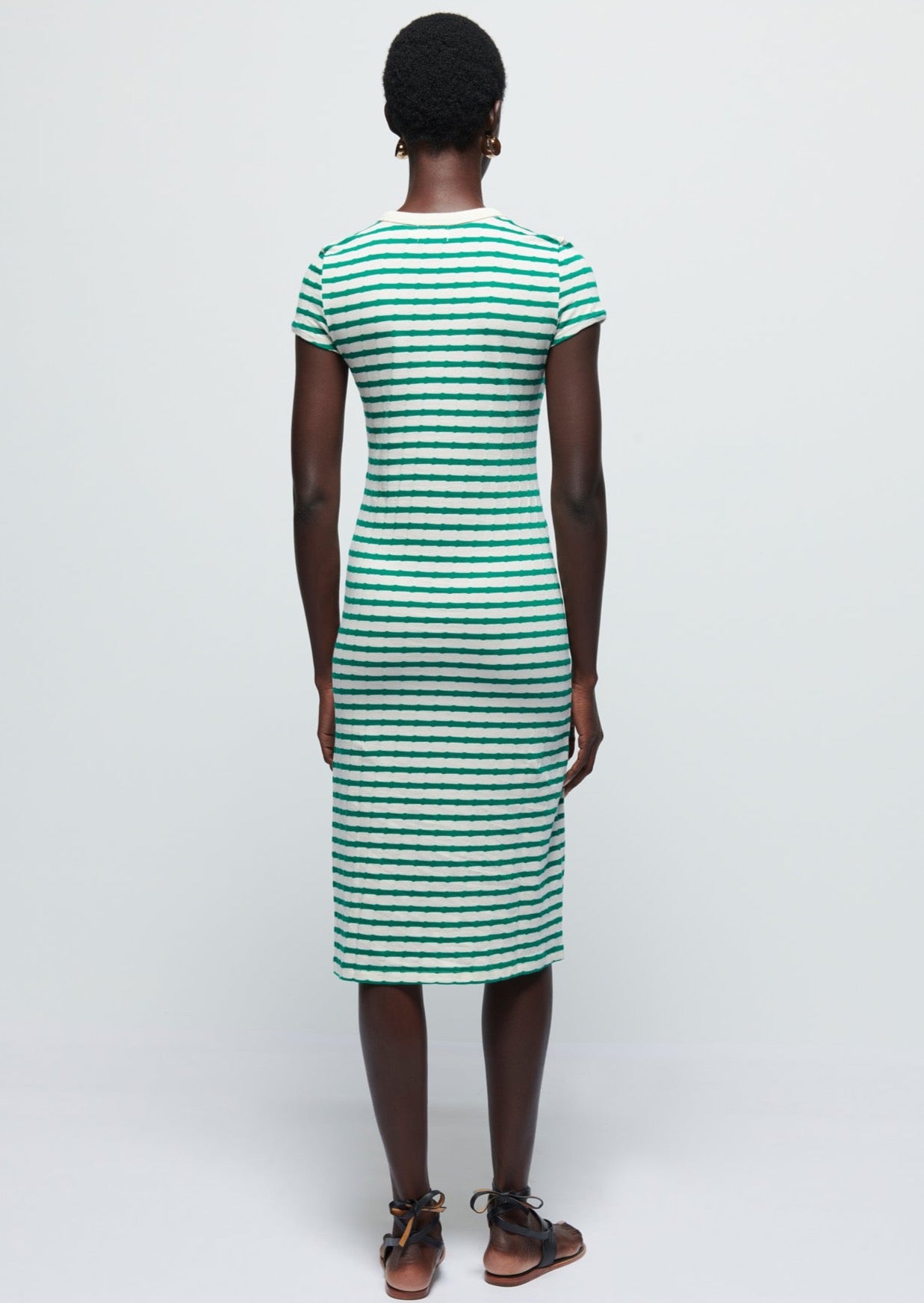 Ingrid Shrunken T-Shirt Dress- Verdant Green Stripe