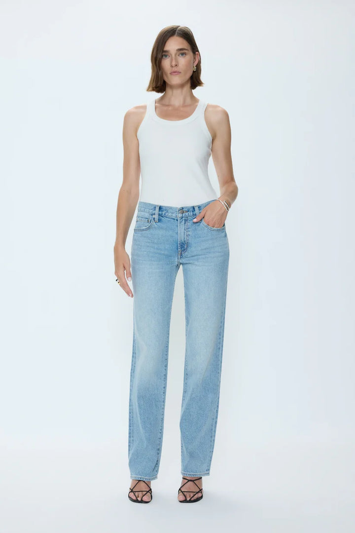 Issa redefines the straight-leg staple with a mid-rise waist and relaxed fit through the hips and thighs. Cut from non-stretch denim, the full-length inseam creates a polished, elongated line that balances ease with versatility. The Road Trip wash adds subtle character while maintaining the clean aesthetic that makes this jean a foundational piece for any wardrobe.