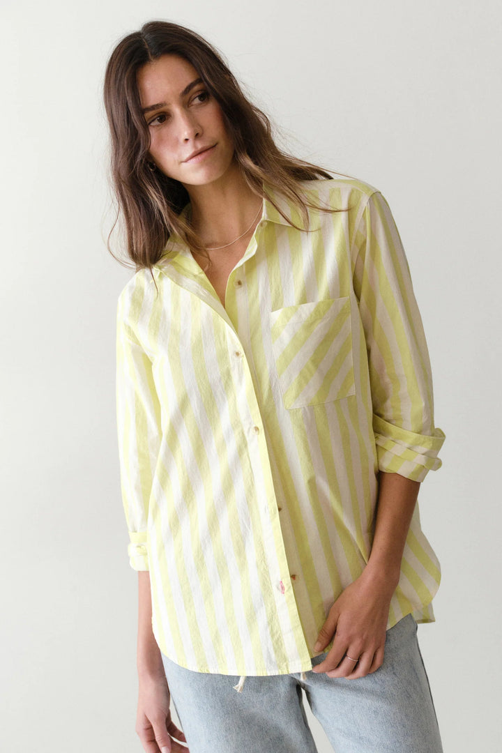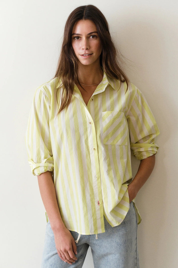 Jane Relaxed Shirt in Cali Poplin- Lime Stripe
