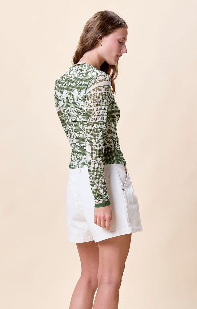 Crafted by hand in India, the Jay Top pairs a luxurious nylon-elastane blend with intentional design details that elevate everyday wear. The signature Verdant Flight print commands attention without demanding effort, while strategic shoulder shirring and a refined high neckline create dimension and polish. Built for real bodies and real life, this piece transitions seamlessly from season to season—a versatile essential that rewards repeat wearing.