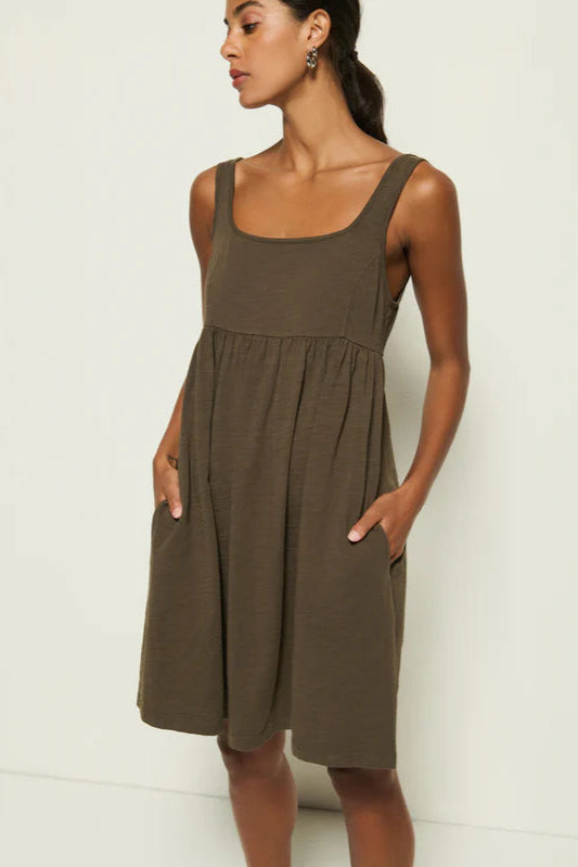 The Kitty Babydoll Mini in Espresso is your new go-to for easy, breezy style. With its relaxed babydoll shape, square neckline, and playful gathered skirt, it’s designed for comfort and charm. Plus, handy pockets add a fun, practical touch. Perfect for days when you want to look effortlessly cool without trying too hard.