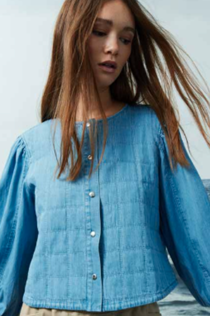 Kitty Quilted Chambray Jacket- Bleached Denim