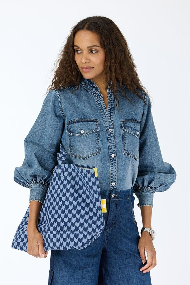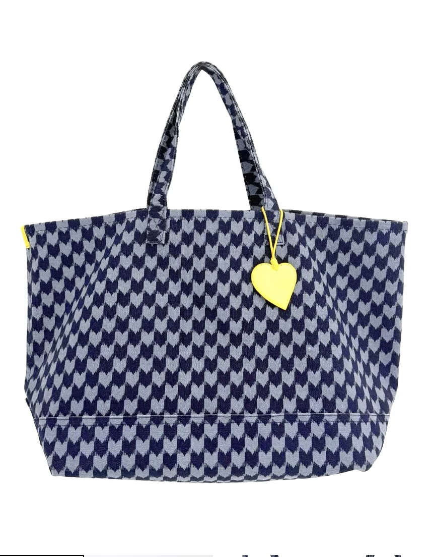 KR Heart In Check Tote- Light Blue-Mid Blue