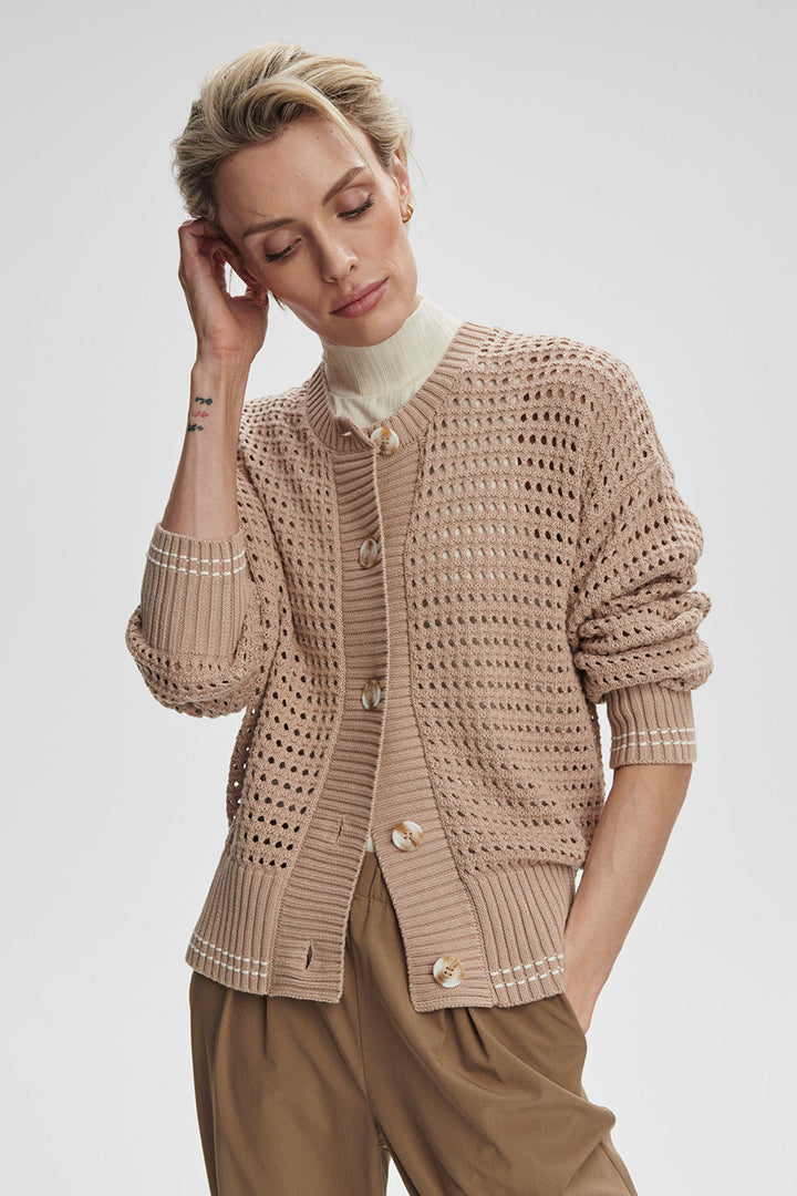 Kris Relaxed Fit Knit Cardigan- Light Taupe