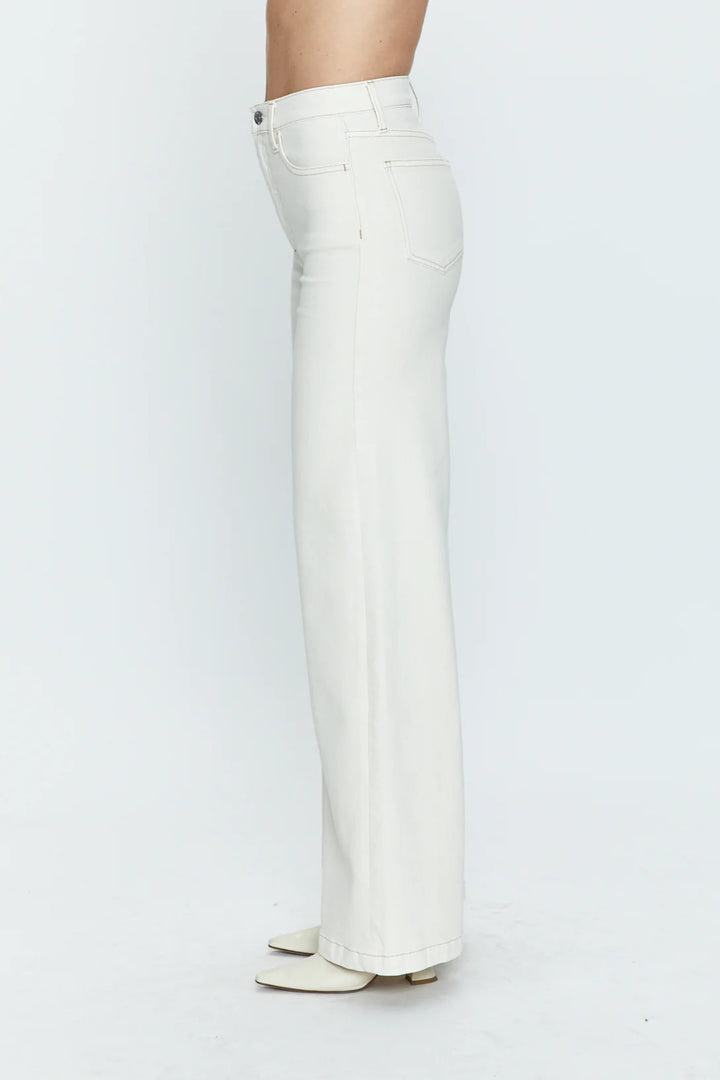 Step back in time with our Lana High Rise Ultra Wide Leg Denim. Inspired by the 70's, this warm cream wash with contrasting beige stitching provides a polished yet relaxed look that can easily transition from day to night. Elevate your style and wear white all year long.