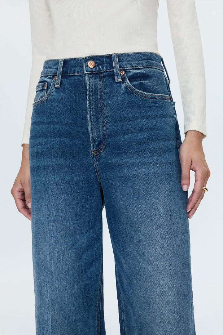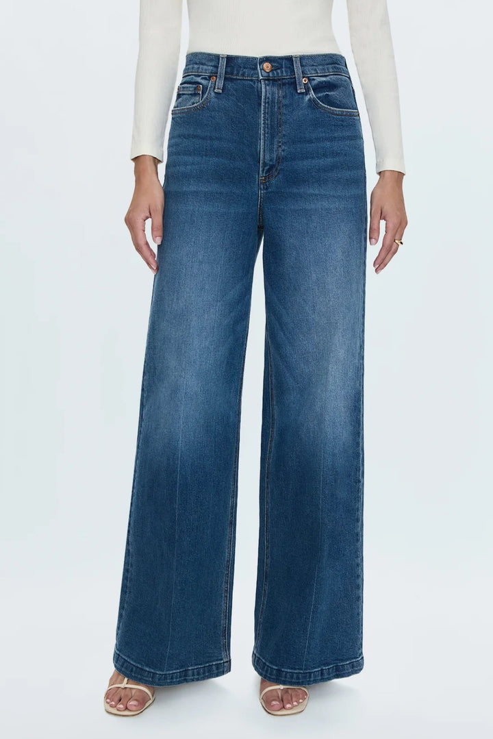 Another favorite here at Illie & Co. from Pistola. The Lana is a wide leg, relaxed fit denim crafted from Pistola's comfort stretch denim to provide structure and shape without compromising comfort. We are obsessed with the dark to medium wash of this denim and the classic wide leg fit.