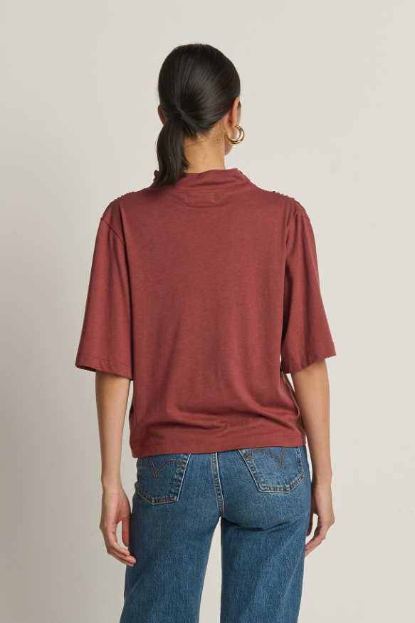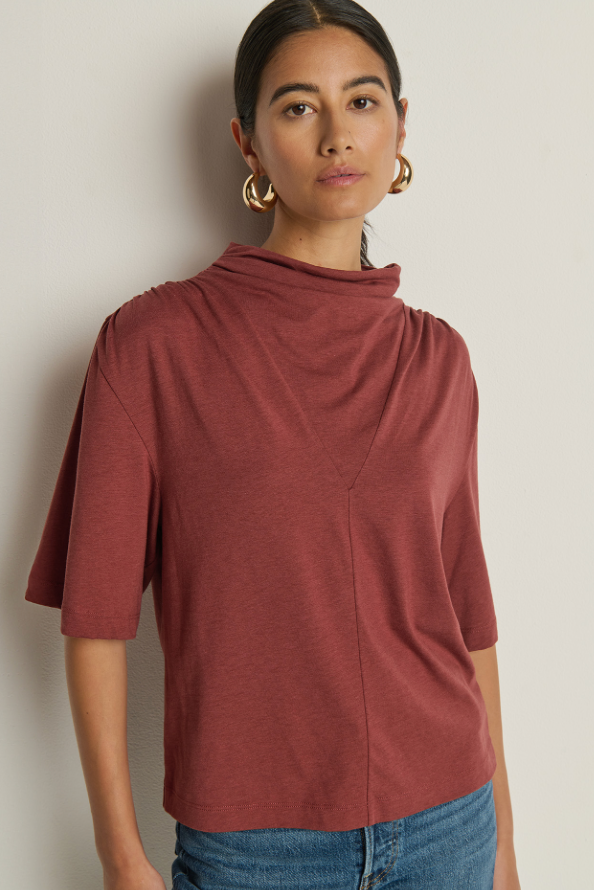 The Lara Tee strikes that sweet spot between effortlessly cool and intentionally crafted. Built from sumptuous jersey in our signature fit, it features a distinctive V-shaped neck seam that creates delicate, feminine shirring across the shoulders. Think vintage oversized vibes with a sculptural edge—the kind of piece that looks like you threw it on but actually put real thought into it. Versatile enough for everyday wear, elevated enough to feel special.